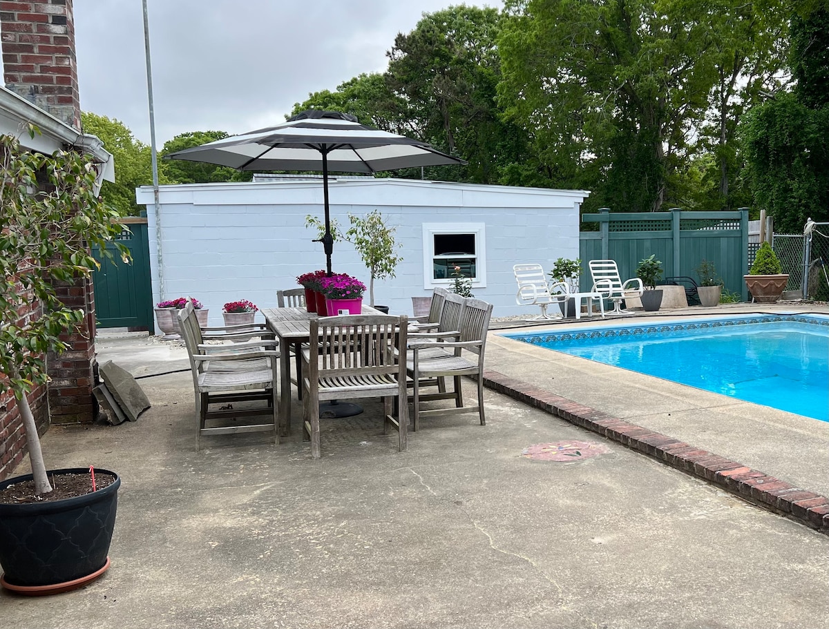 Kapcsolódj ki egész évben a Hyannisban található Cape Cod-i szálláshelyünkön! Élvezd a teljesen felszerelt konyhát, és vacsorázz stílusosan a házban vagy a szabadban. Legfeljebb 6 felnőtt alhat a 3 queen méretű ággyal rendelkező hálószobában, a gyerekek pedig emeletes ágyon alhatnak. Pihenj a hatalmas, elkerített udvarban, ahol kültéri zuhanyzó, grill, kényelmes teraszbútorok és egyedi tűzrakóhely vár. Nagy sebességű Wi-Fi és munkaterület. Játékok, könyvek és strandfelszerelés biztosított. <2 mérföldre 8+ strand, imádnivaló butikok, művészet és éttermek. Egy jól betanított kutya, aki nem mászik fel a bútorokra, szívesen látott.