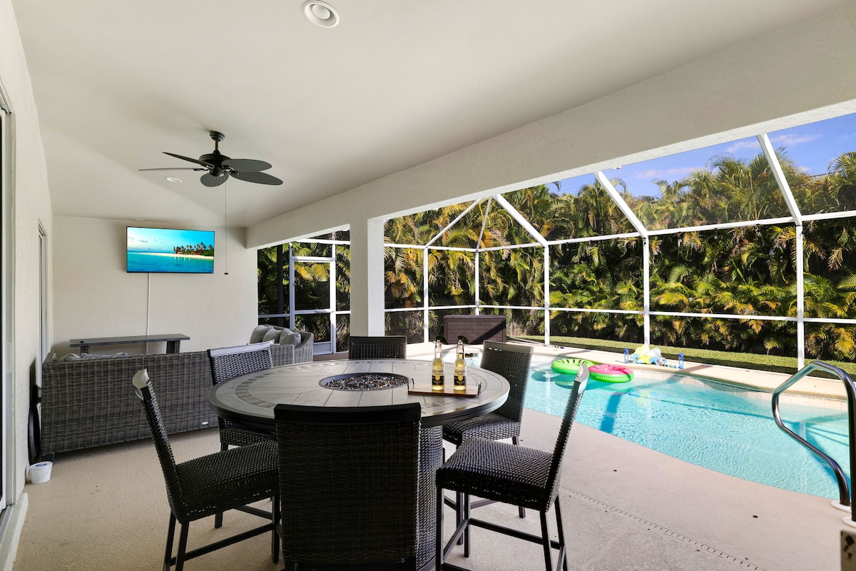 -5 perc Cape belvárosáig/10 perc Yacht Club Beach, 20 perc Causeway Beach, 25 perc Ft Myers és Sanibel Beach – Trópusi, elkerített hátsó udvar medencével, pezsgőfürdővel, gáztűzhellyel, hintaszékkel, függőággyal és Blackstone grillsütővel - Strandkellékek, boogie deszkák, napernyők, strandszekér, hűtő és székek - Társasjátékok, pingpong, kukoricalyuk, darts, 2 kajak+mentőmellények -2 Beach Cruiser kerékpár + sisak - Pihentető zárt fedett terasz + fényfüzérek, neonfény és fűfal -Canal access for kayak launch 5 minutes away