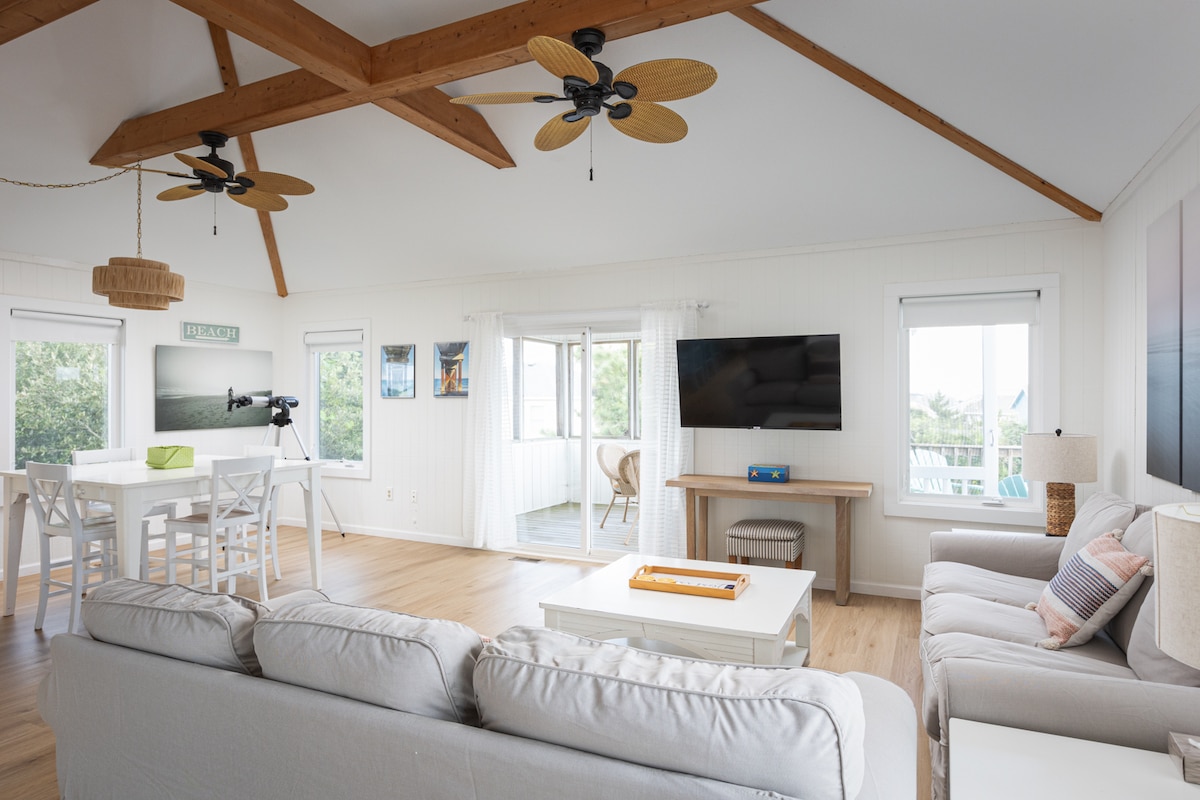 Az OBX Sharp Stays házigazdája: Ismerd meg Outer Banks egyik EREDETI kisházát! Ez a 2 hálószobás, 2 ágyas menedékhely (TV-vel) az Avalon Beachen található, és teljesen fel van töltve a kényelmed érdekében. Alig egy mérföldre az Avalon Fishing Pier-től és pár lépésre a Bay Drive Boat rámpától/hanggal a lélegzetelállító naplementékhez. Fedezd fel a környéken található kerékpárutat a Wright Brothers emlékműhöz, a Kill Devil Hillhez vagy a történelmi múzeumhoz. Közel a vásárláshoz, étkezéshez és az óceánhoz. Gyere, legyél a vendégünk!