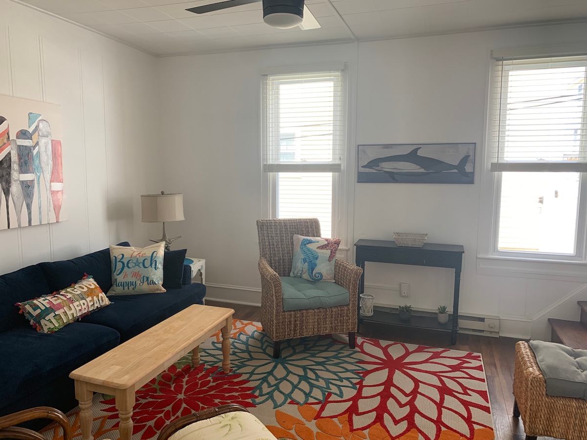 JUST 3 BLOCKS to BEACH and BOARDWALK and Amusement Piers. Inviting 2nd floor 2 bedroom vacation getaway. 4 guests maximum. Enjoy the magical shared yard with fountain. Wi-Fi is available. Plus Smart TV and DVD player. Walkable to various amenities such as restaurants, Wawa & Supermarkets. 15 minutes to Victorian Cape May. AC in both bedrooms is provided 5/16 to 10/15. Heat provided from 10/15 to 5/10. ALERT! I cannot accommodate service or support animals due to my severe allergies.