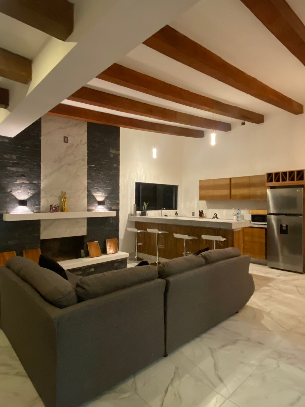 Modern, két hálószobás lakás San Jose de Gracia szívében, két háztömbre a főtértől és a templomotól. Szomszédban kávézó, pár lépésre bár, lent élelmiszerbolt. Természetes fény árasztja el a helyet, amely légkondicionálóval, gyors Wi-Fi-vel, teljesen felszerelt konyhával és vadonatúj készülékekkel rendelkezik. Önálló bejutás intelligens zárral – egyszerű érkezés bármikor. Kiváló pároknak, családoknak vagy távolról dolgozóknak Jalisco egyik legkönnyebben bejárható városában.