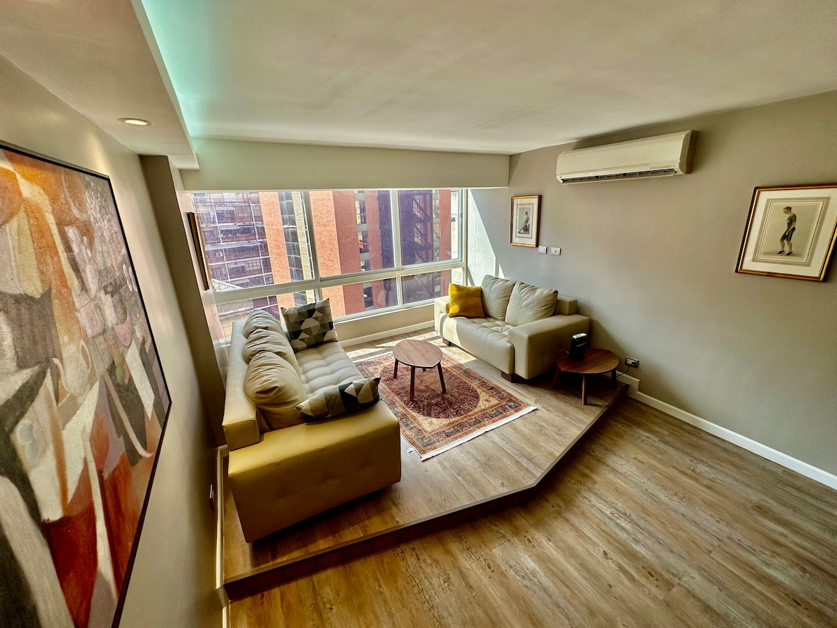 Üdv🏠✨! Élvezd ennek a hangulatos lakásnak az egyszerűségét. Hangulatos és pihentető szobát kínálunk a város szívében, ahonnan könnyen elérhető az autópálya mindkét irányban, a tömegközlekedés és a metróállomás közelében.Ⓜ ️Élvezd a kényelmet, hogy csak néhány lépésre vagy a legjobb éttermektől, üzletektől és látnivalóktól, miközben egy csendes és privát helyen pihenhetsz. 📍Elhelyezkedés: Sabana Grande a CC El Recreo és a Hotel Melia közelében