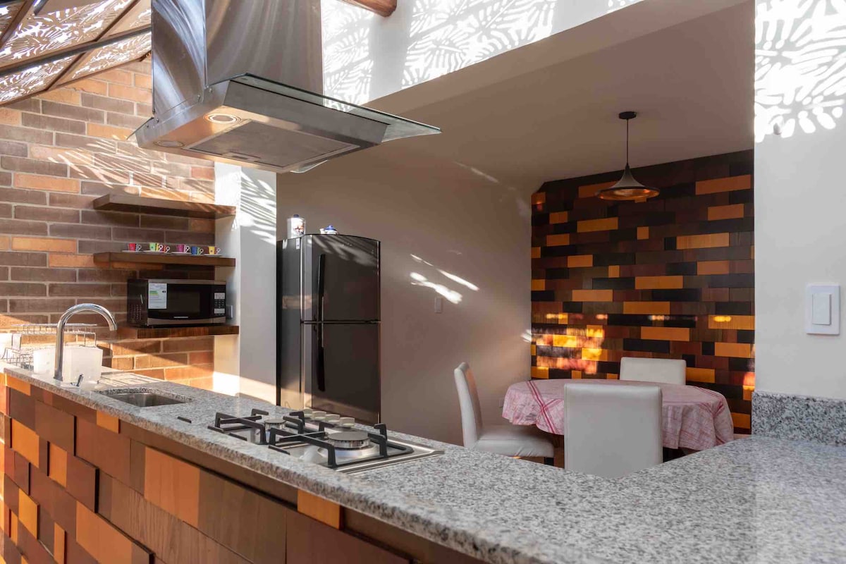 Szívd magadba a nyitott terű élet melegét és fényét, fényűző, 9 láb magas hálószobai mennyezettel, egy 20 láb magas, tetőablakkal ellátott mennyezettel a közös/konyhai területen, valamint túlméretezett ablakokkal a békés, csendes és pihentető tartózkodáshoz Cuencában. ⚡️ Éjjel-nappali meleg víz, Wi-Fi és áram a készülékeid számára a hálózatra szerelt tartalék akkumulátorrendszerünknek köszönhetően. Megjegyzés: egyes nagyteljesítményű készülékek, például a hajszárító és a vízforraló nem működnek áramkimaradás esetén.