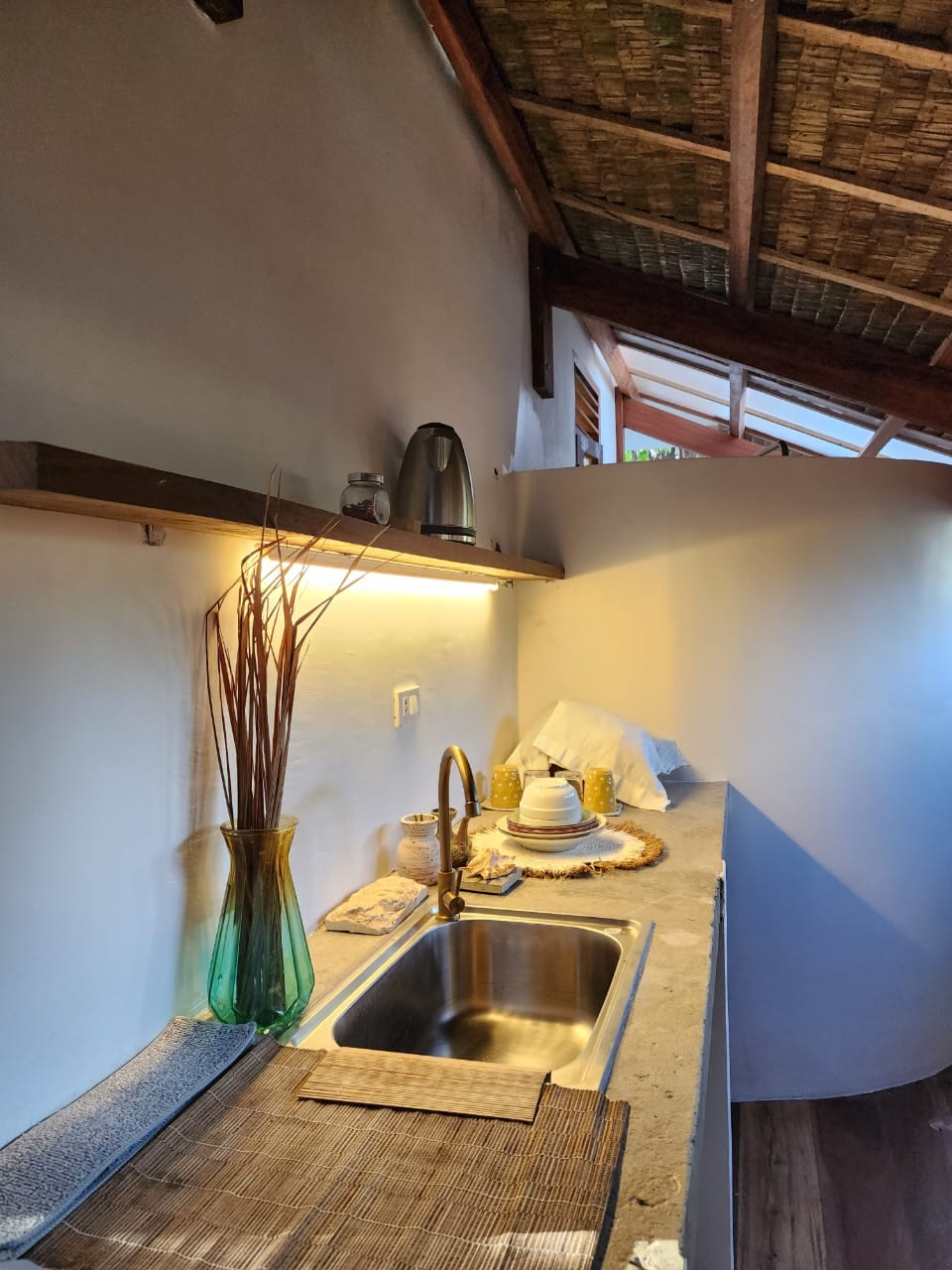 Található, kevesebb, mint 2 percre a hordós hullámok Cloud 9, a kis sziget falu Catangnan, fekszik a 3 egyedi sziget lakhelye. Az őshonos, kubo stílusú kubo stílusú kunyhók együttműködése egyedi dekorációval. Minden légkondicionálóval, elektromos ventilátorral, teljesen felszerelt konyhával, saját fürdőszobával, forró zuhanyzóval, társalgóval és íróasztallal és székkel büszkélkedhet. Minden ház központi része egy közös úszás, amely lehetőséget kínál a vendégeknek arra, hogy megmártózzanak és lehűljenek a trópusi napsütésben.