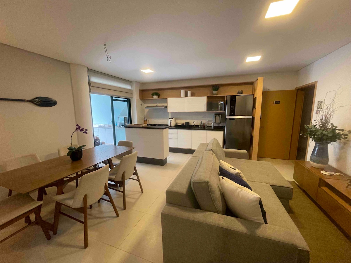 95 m2-es apartman a Condomínio Reserva DNA-ban, tengerre néző, Praia Grande-ban, Ubatuba-ban, teljes szabadidős infrastruktúrával és kereskedelmi körúttal, legfeljebb 6 fő számára, a következőkkel: 3 lakókörnyezet - konyha - étkező - nappali - 2 lakosztály - légkondicionálóval. - privát grill - Gourmet Balcony garázs 2 jármű számára. Üdülőhelyi szabadidős terület – medencék, mozi, játéktermek, egyetem, gyógyfürdő, szauna, játszószoba és rengeteg zöld terület.
