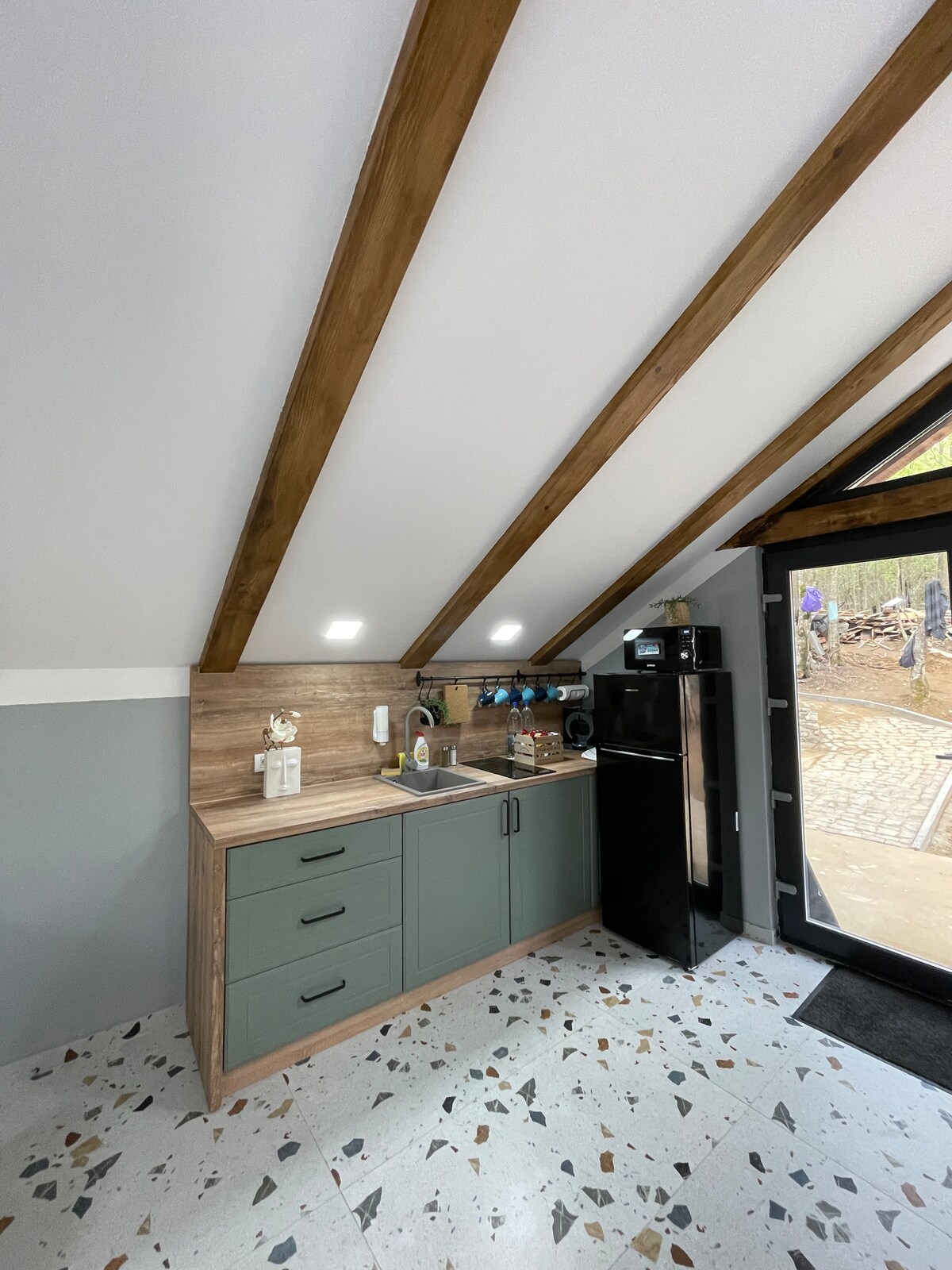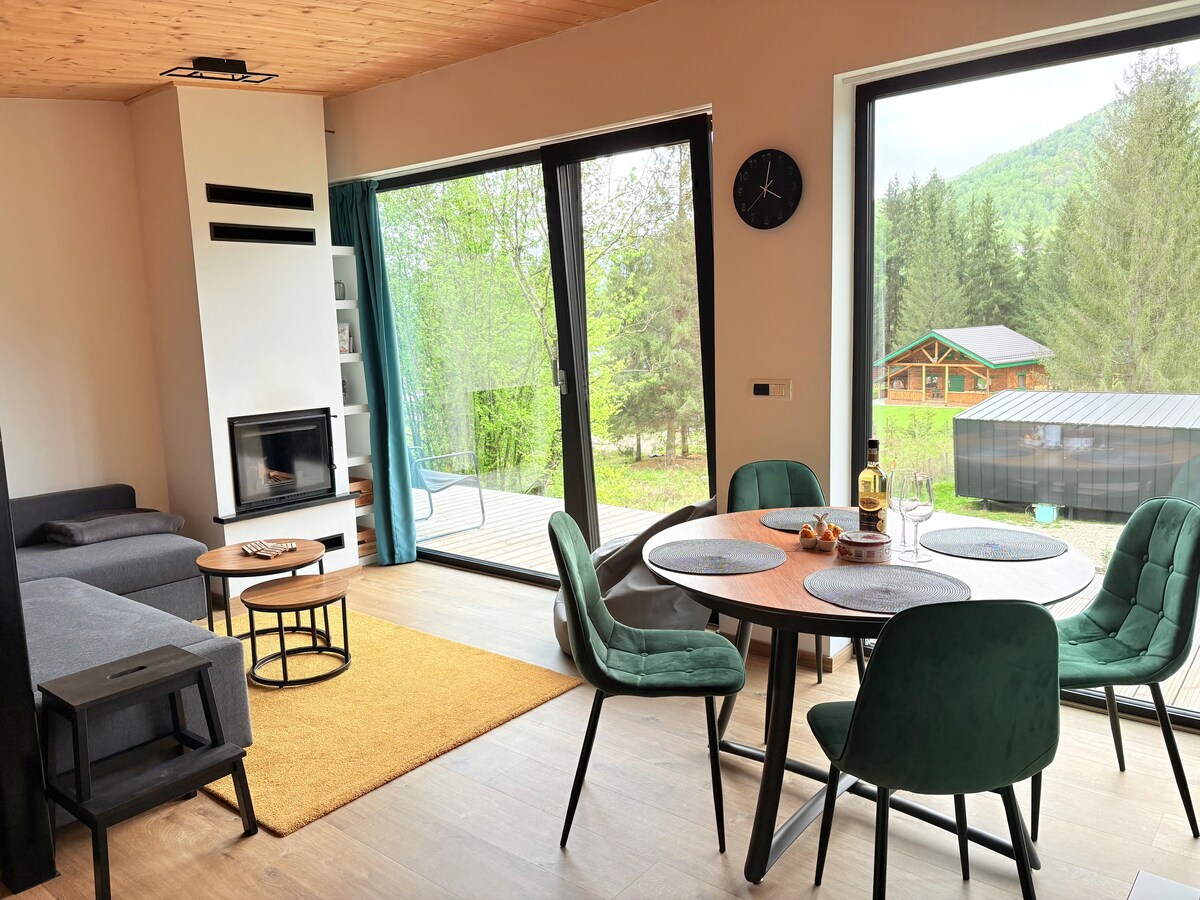 Csendes és élénkítő kiruccanás a természetben. A hegyekre és a kristálytiszta tóra nyíló panorámával rendelkező kisház tökéletes hely a kikapcsolódásra és a természettel való találkozásra. A természetes fából épült rusztikus építmény a modern kényelmet a hagyományos bájjal ötvözi. A víkendház teraszán élvezheted a reggeli kávédat, miközben a hegyek feletti napfelkeltét élvezed, vagy a csendes estéket a tábortűznél töltheted a csillagos ég alatt.