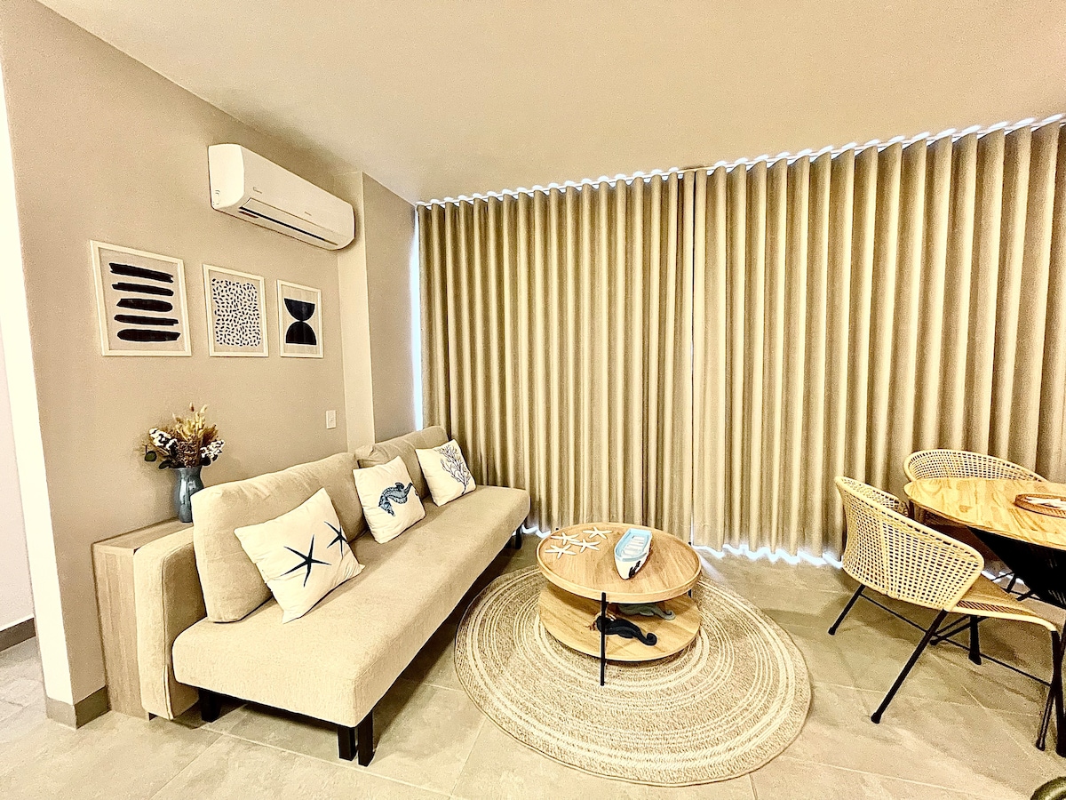 Élvezd a vadonatúj tengerparti lakást a strandhoz és a medencéhez való hozzáféréssel, mindössze 5 percre a repülőtértől. Tökéletes pároknak vagy egyedül utazóknak, kényelmes franciaággyal és egy további alsóággyal. A lakásban legfeljebb 3 fő fér el, egy 4. vendég pedig kiváló minőségű légmatracon. Élvezd a strandklubot helyi ételeket kínáló étteremmel, pezsgőfürdőkkel és tökéletes pihenési légkörrel. Az ideális kiruccanás Santa Martában! Közvetlenül a Decameron Hot mellett vagyunk