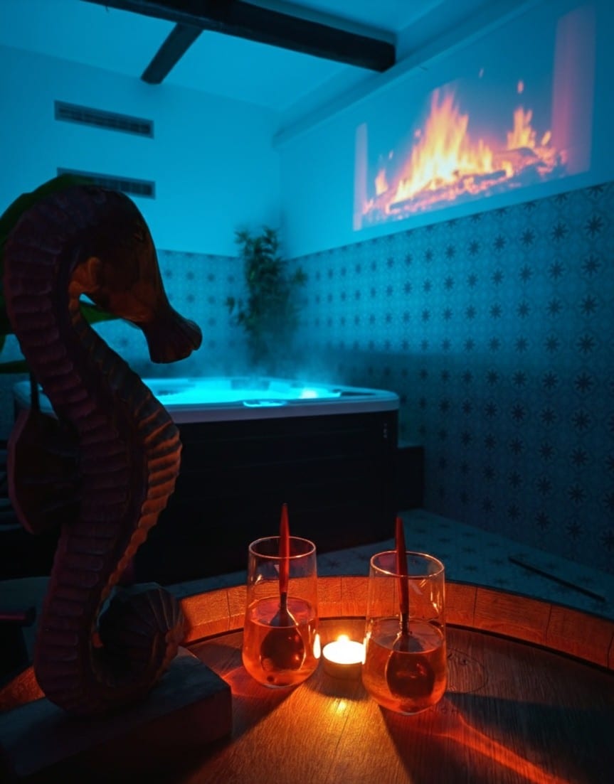 [ÖNÁLLÓ BEJUTÁS] [LÁB A VÁROSBÓL] [LUXUS, ROMANTIKA, ÉLVEZET] [AZ UTOLSÓ TAKARÍTÁS AZ ÁRÁBAN VAN] Szeretnél lazítani és elengedni magad? Az Ô Lit Divin a kényelem fészke: king size méretű ágy (180*200), balneoterápiás pezsgőfürdő, privát szauna, fényterápia és elektromos kandalló, hogy még kellemesebbé tegye a pillanatokat. Szánj időt az ágyban reggelizésre, és lepd meg a párodat egy opcionális pajzán dobozzal, hogy felébresszed az érzékeidet.