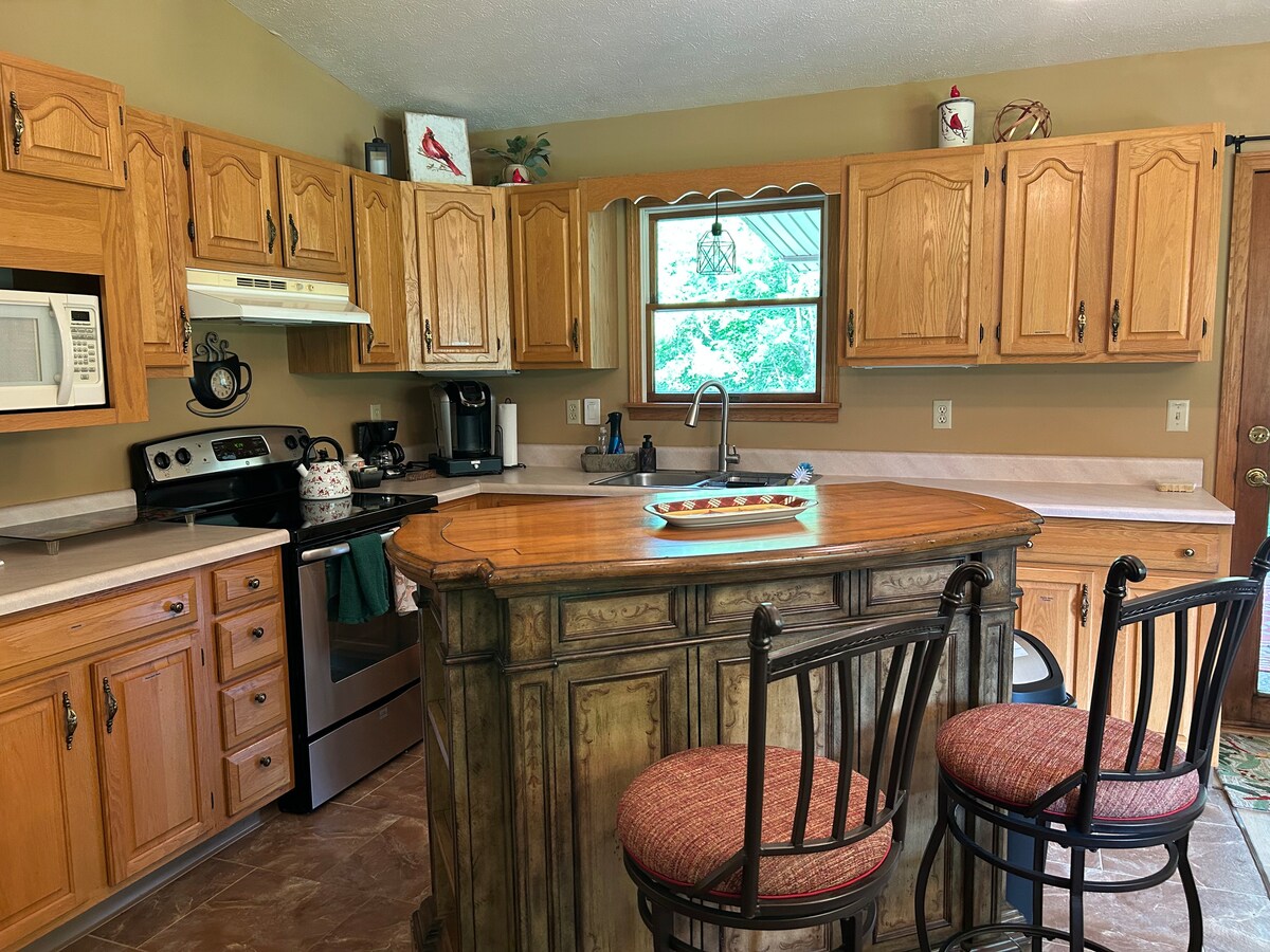 ~Felújított vidéki ház 2 hektáros telken. Békés, de nem távoli. ~Közel az I-71/13-hoz Bellville-től északra – Snow Trails (4,7 mérföld), Mid-Ohio (9,3), Mohican State Park (13,2), Ohio State Reformatory (10,9). ~Kevesebb mint 2 mérföldre az élelmiszerboltoktól és éttermektől. ~ A házigazda el tudja hozni az élelmiszereket a legközelebbi Wal-Martból ~2 king méretű ágy, 1 queen méretű ágy, 2 XL ikerágy, ~2 teljes fürdőszoba, új konyha, mosógép és szárítógép. ~Garázs használata ~2 Sony okostévé és internet. ~Legfeljebb 8 fő, 2 háziállat. Kérjük, olvasd el a teljes hirdetést.