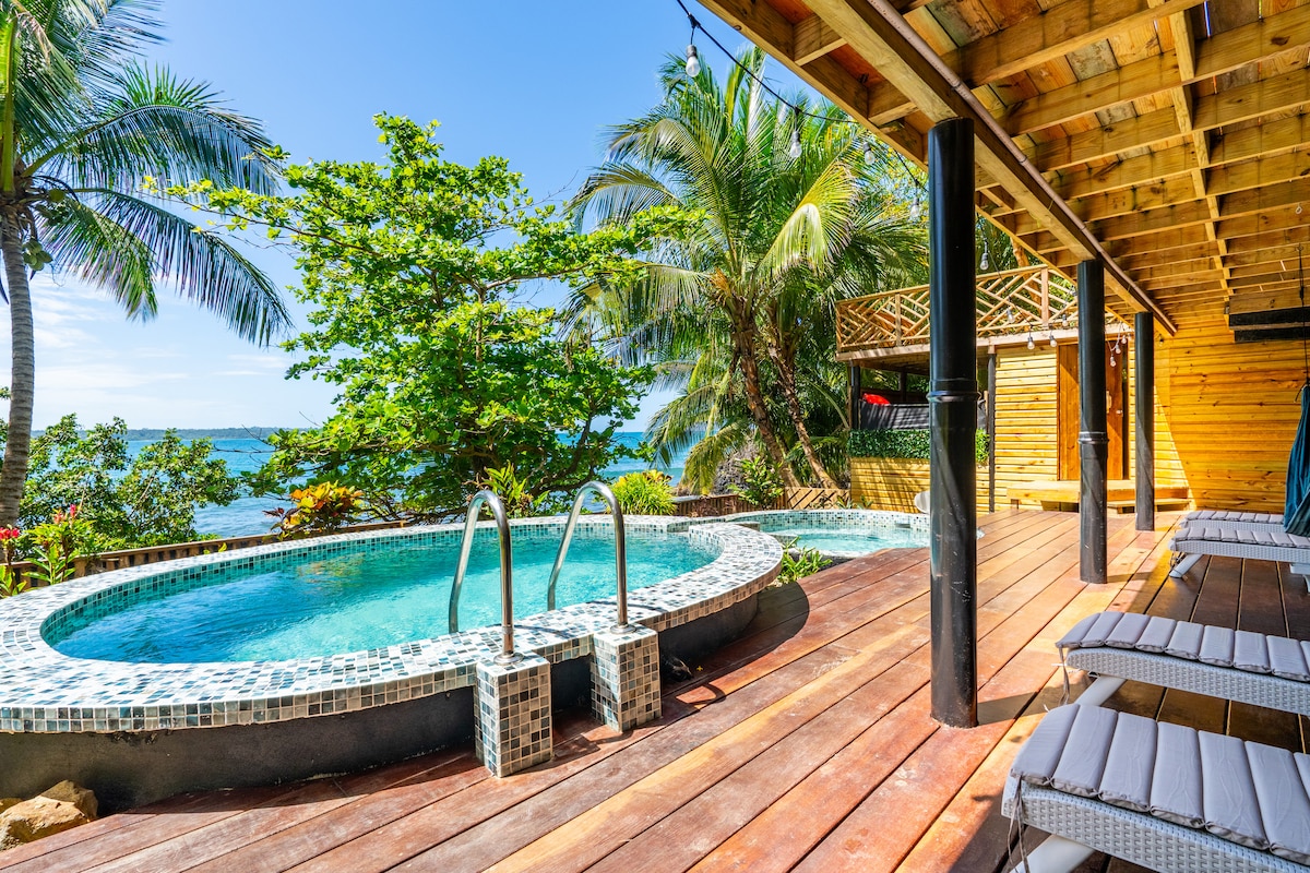 A Bastimentos Bay vízén elterülő, jól felszerelt négy hálószobás és három fürdőszobás családi ház a klasszikus karibi építészetet modern érzékszervekkel ötvözi. A több mint 2000 négyzetlábnyi, kényelmesen berendezett helynek köszönhetően nyolc felnőttnek elegendő hely áll rendelkezésre, hogy bármilyen időjárási körülmények között időt töltsenek együtt - vagy külön -. BBQ poolside, stargaze from the hammocks, fish off the dock, walk to restaurants, or flag down a water taxi from your private boat dock for the ten minute trip to Bocastown.