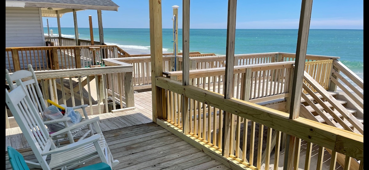 Élvezd a tökéletes, óceánparti családi kiruccanást Oak Island nyugati partján. Ez a 2. emeleti egység a tengerparti ház külön bejárattal, két hálószoba, egy fürdőszoba, és alszik hat vendég. A konyha teljesen felszerelt, fazekak, fazekak, edények, teljes méretű hűtőszekrény, mikrohullámú sütő, tűzhely/sütő és mosogatógép. Élvezze a napfelkeltét és a naplementét a hatalmas fedélzeten, figyelve a hullámokat és az alkalmi delfineket. Ha az időpontok nem szabadok, nézd meg az 1. szintű egységünk elérhetőségét a www.airbnb.com/h/oki1 oldalon.
