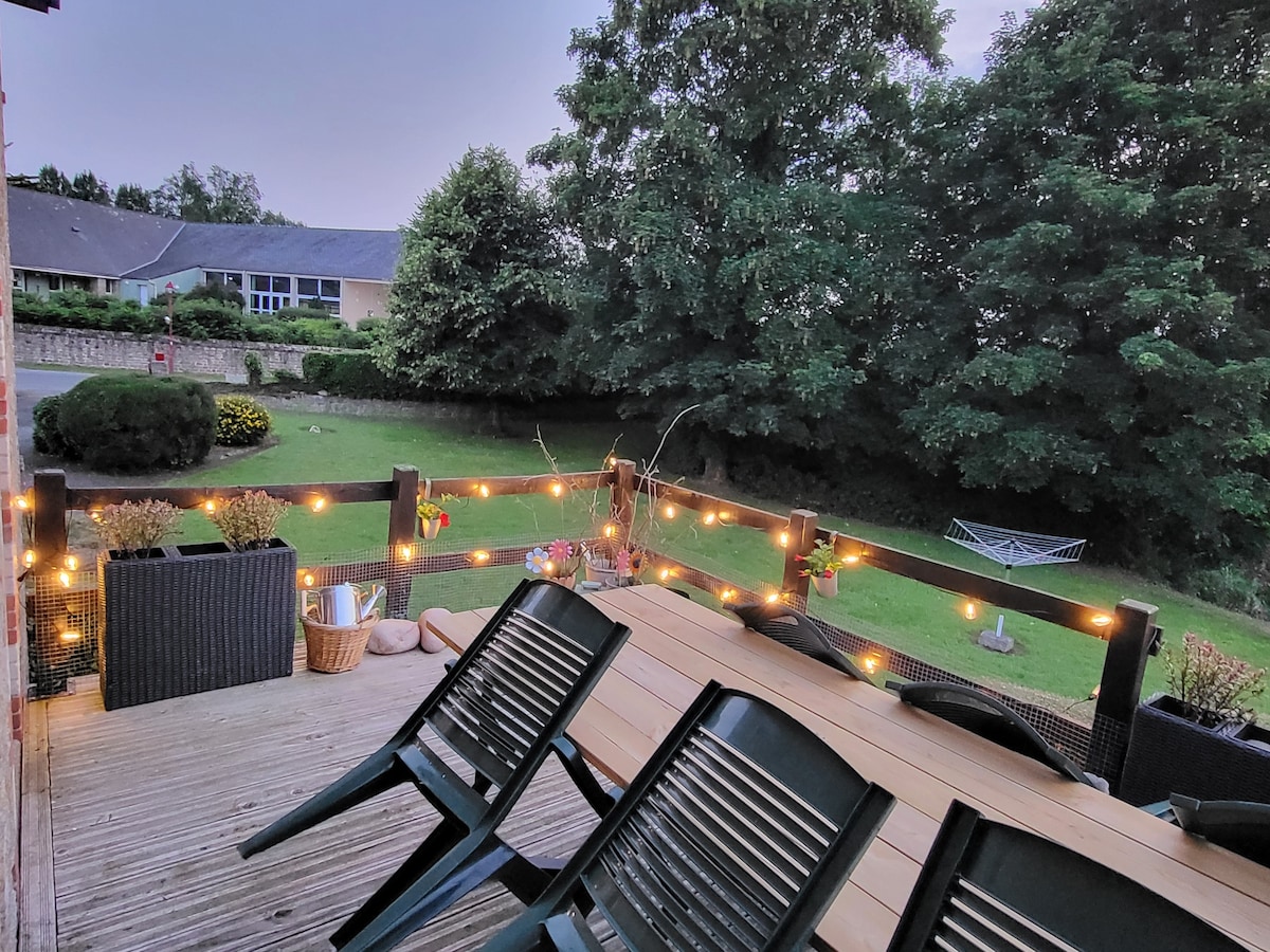 Dans le bourg de Saint-Georges-de-Gréhaigne, charmante longère rénovée en 2024, 90 m² pour 6 voyageurs. Grande pièce à vivre de 45 m², cuisine équipée, deux chambres, salle de bain, WC séparés et extérieur d’environ 100 m². À seulement 10 min du Mont-Saint-Michel, idéal pour découvrir la baie. Wifi, draps et serviettes fournis : posez vos valises ! Pour toute réservation en 2026, voir l’annonce « La Maison de Léon - Proche du Mont Saint Michel -