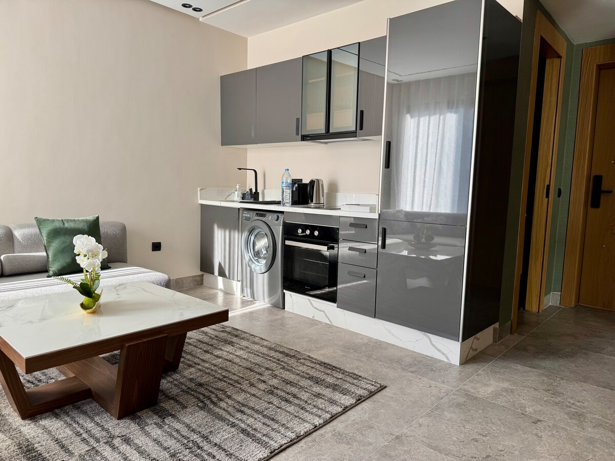 ✨ Luxus stúdió terasszal – CFC Casablanca Élvezd a tágas, világos és csúcskategóriás stúdiót a Casa Finance City szívében. Délre néző terasz nyílt kilátással a városra. 📍 A Morocco Mall, az Aeria Mall, az Anfa Park közelében, és mindössze 10 percre Ain Diabtól. Biztonságos lakóhely kertekkel, edzőteremmel és játszósarkokkal gyerekeknek. Tökéletes üzleti utakhoz vagy pihentető szállásokhoz. ✨ Teljesen felszerelt konyha, gyors Wi-Fi, légkondicionálás és kényelmes ágynemű a zökkenőmentes szálláshelyen eltöltött időért.