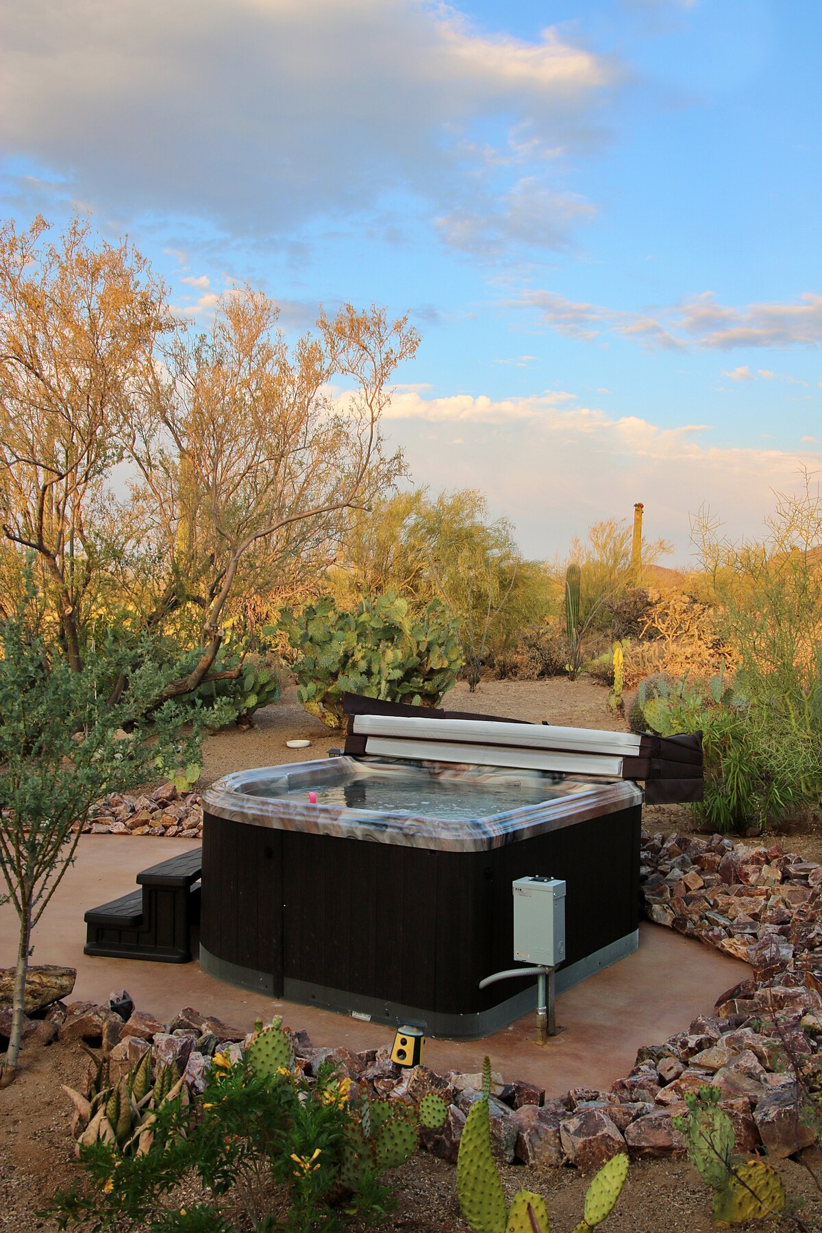 Elbűvölő kiruccanás casita lenyűgöző kilátással a fenséges Saguaro Nemzeti Parkra és a Picture Rock-hegységre a látványos naplementékért. Az 5 hektáros terület számos kaktusznak ad otthont, köztük hatalmas saguaróknak és más őshonos növényeknek és fáknak. A casita panorámaablakain keresztül sivatagi növényzetet, madarakat, nyulakat, prérifarkasokat, hiúzokat, gerelyeket és szarvasokat figyelhetsz meg. Egy esti fürdő a jacuzziban a csillagos ég alatt biztosan sokáig megmarad az emlékezetedben.
