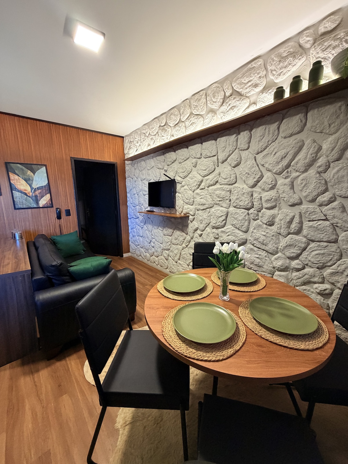 o apto possui 2 quartos, sendo 01 cama casal no quarto c ar condicionado, e no outro quarto 02 cama solteiro, sala com TV, e cozinha c eletrodomésticos possuindo 1 mesa q permite o trabalho remoto c Wi-fi, e WC privativo. Aproveite o acesso fácil a td o q precisar nesta acomodação. Local Seguro, pois dispõe de câmeras de segurança, nos locais públicos, com Regras p melhor convivência c os outros hóspedes, sendo uma delas, q não é permitido visitas