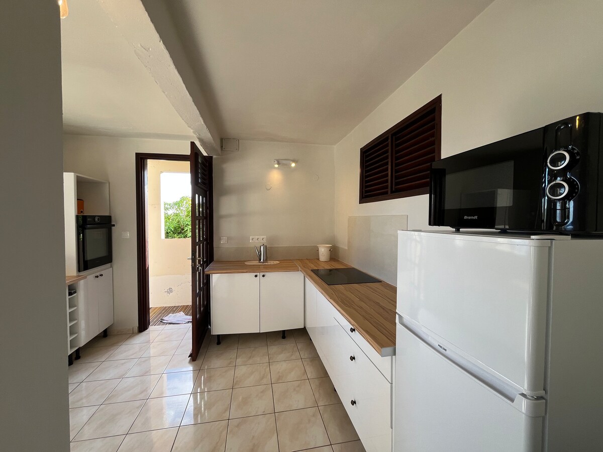 Imádni fogod a kiruccanásodat a „Jade gyöngyszemében”! Ez a kis zöld gubó, amely a Case Pilote magaslatain található, a következőket tartalmazza: - félemeletes szoba kétszemélyes ággyal, légkondicionált, - egy kis nappali kanapéval, TV-vel és mindennel, amire szükséged van ahhoz, hogy otthon érezd magad, - modern és ízlésesen berendezett zuhanyzó, - kültéri teakonyha, - medence a kikapcsolódáshoz, kilátás nélkül, terasszal, ahol pihenhetsz és pihenhetsz.