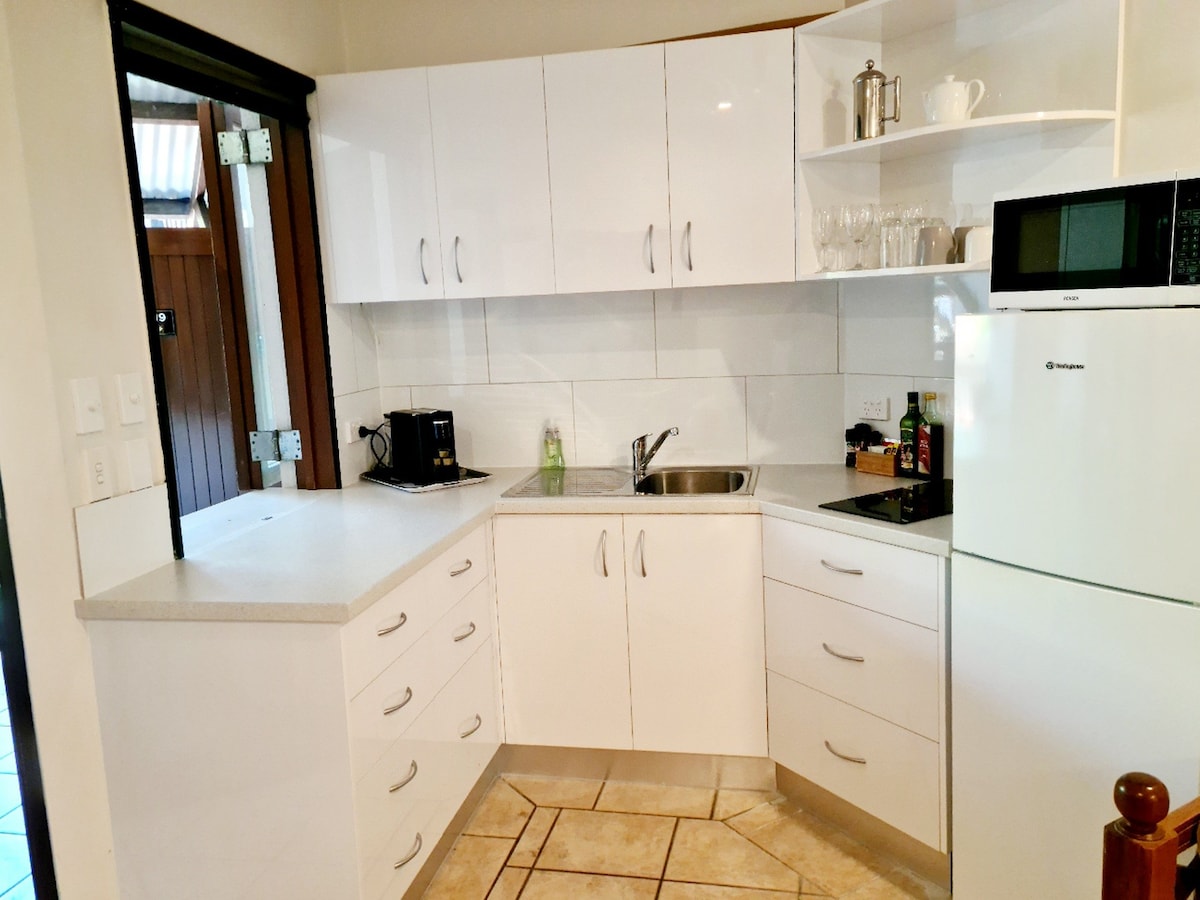 Relax in this unique one bedroom apartment, a short stroll to the beach, cafes, shops and restaurants of Port Douglas. With all the luxuries of home...free wifi, Smeg appliances, expresso machine, washer, dryer and a heated pool will compliment your wonderful stay in Port Douglas. Set in an idillic location; on the second floor where the balcony overlooks the melaleuca trees in Renolds Park.