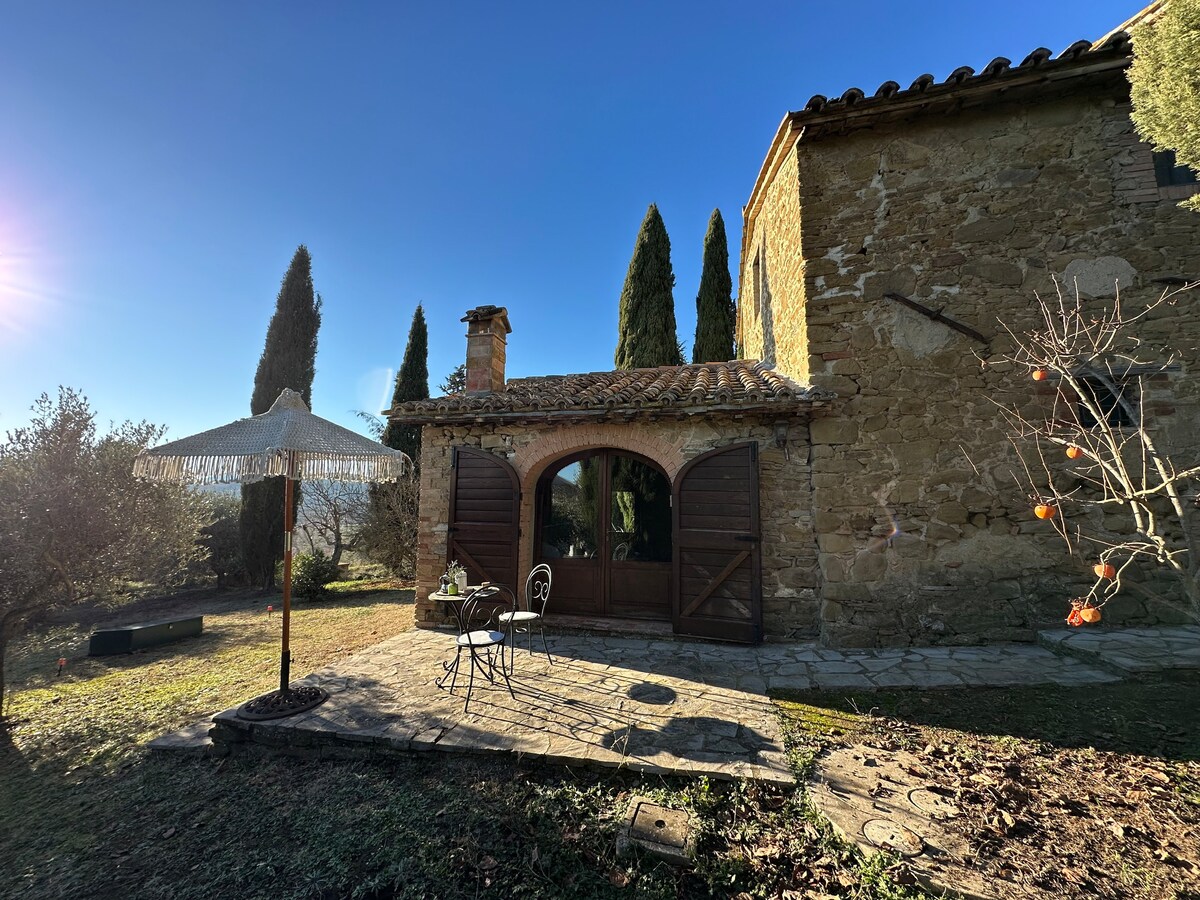 Üdvözöljük bájos apartmanunkban a Fattoria Fontenovo-ban Umbria friss dombjain!Ez a hangulatos menedék a történelmi Fontenovo Farmon, amely több mint 100 éve a családunk tulajdonában van, a magánélet és a nyugalom tökéletes keverékét kínálja. A tágas villa egyes területei üresen maradnak, mások pedig a te használatodra vannak fenntartva. A szálláshelyen eltöltött idő alatt te leszel az egyetlen lakó, kivéve a tulajdonosokat, akik alkalmanként a ház egy másik részében tartózkodnak. Élvezd a buja kerteket, a saját medencét és a nyugodt vidéket.