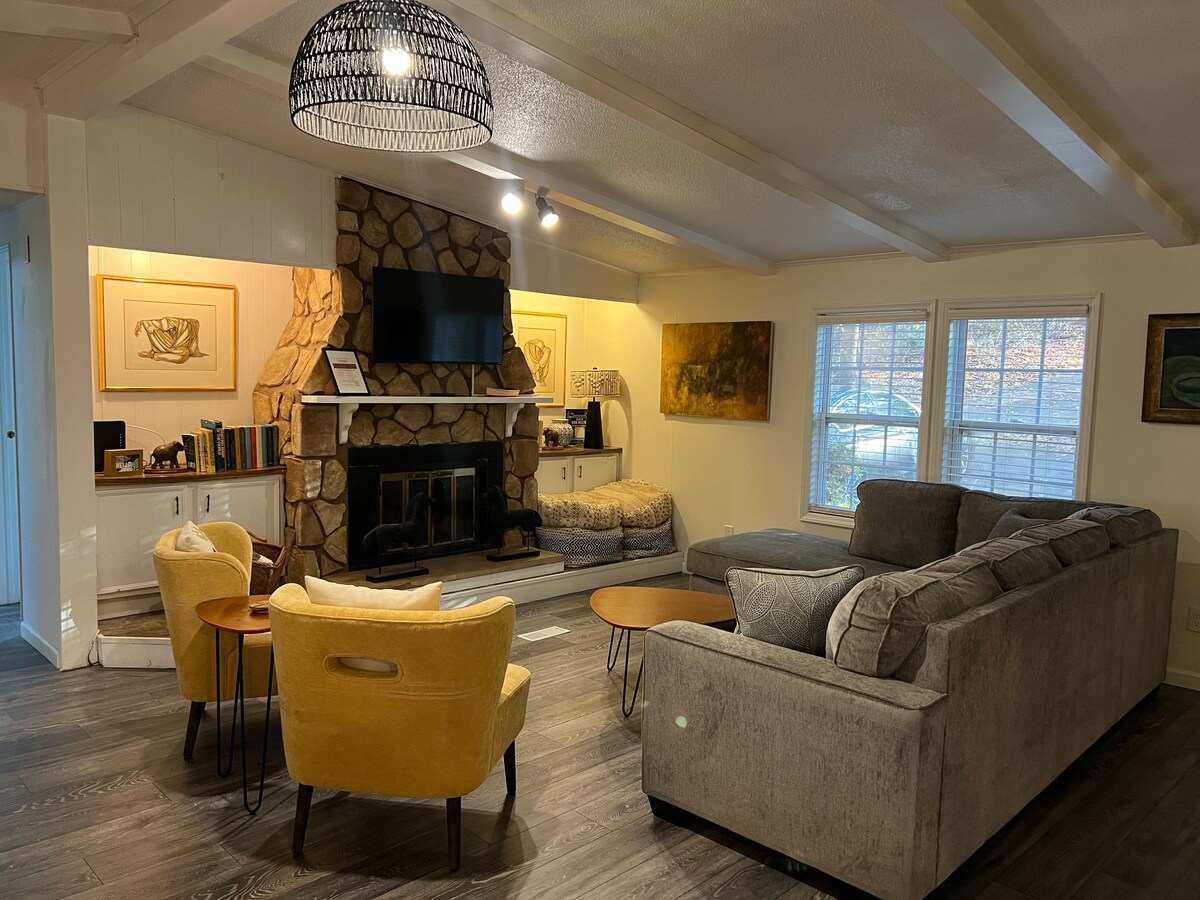 This newly renovated 4 BR/ 2 BA house is perfectly located for you to enjoy everything Hickory and Lenoir-Rhyne University have to offer. The home has an oversized master suite with fireplace, king bed, luxurious bathroom and walk-in closet. The three guest rooms offer two with queen beds and one with two twin beds. During your time here you will find a dedicated work space with high speed fiber internet, an entertaining living room, an indoor dining area, and multiple outdoor patios.