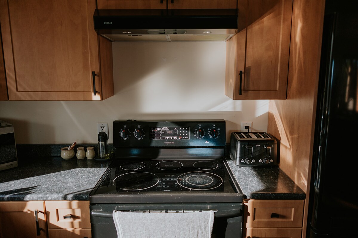 Welcome to our quiet 2-bedroom suite, perfectly located for VIU, NRGH, Westwood Lake and the Aquatic Centre. Whether here for a tournament, family visit or remote work, enjoy 250 Mbps Wi-Fi, a sit/stand desk and cooling AC. Our well-equipped kitchen is built for real cooking, with a cozy living area and garden patio to unwind. We personally prepare every detail to ensure a sparkling clean stay, with shared laundry and covered parking included. Well-behaved medium dogs are always welcome!