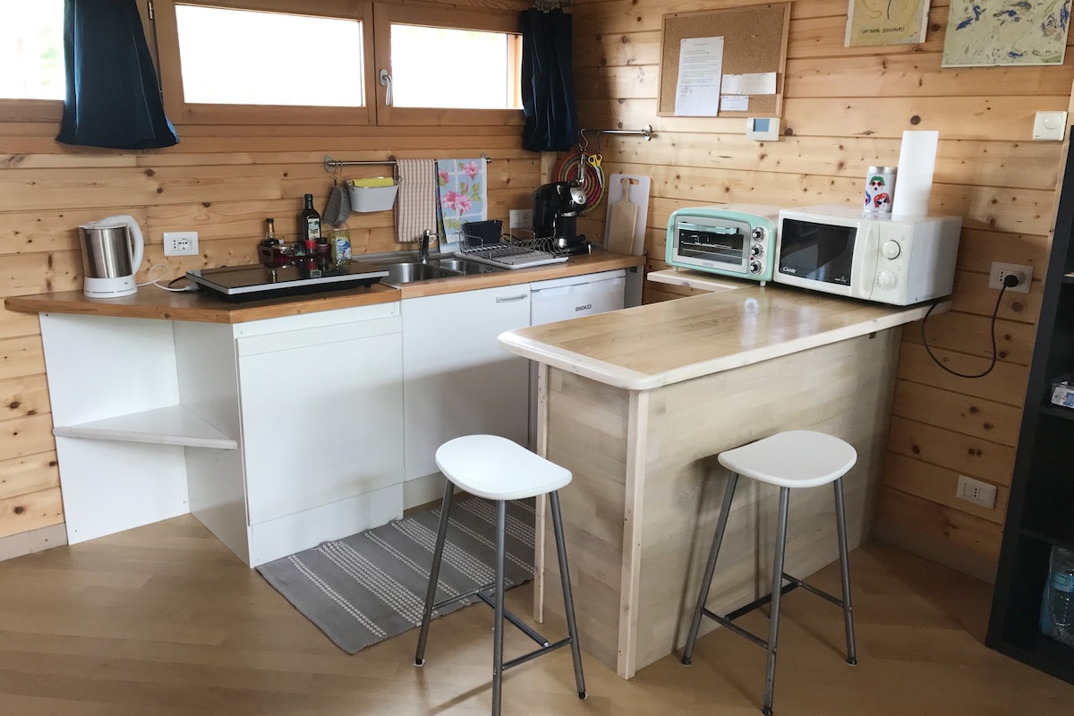 Luminoso e confortevole appartamento di 45 mq con ingresso indipendente e grande terrazzo. È composto da una camera da letto matrimoniale e da un soggiorno con un divano letto a due piazze. Dispone di angolo cottura ben attrezzato e del necessario per la colazione: pane, marmellata, caffè, tè e brioche, da gustare in casa o sul grande terrazzo. Bagno con doccia. Si affaccia su un grande giardino privato in condivisione con eventuali ospiti del Green Cottage. Dispone di aria condizionata.