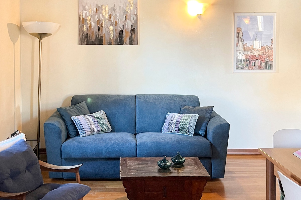 VENICE ACCESS FEE FREE (only city tax 4€ x person x day ) Newly renovated and very bright 50 sqm apartment, located in the historic center of Venice, in the Castello district, where you can experience the true Venetian lifestyle. The apartment features a double bedroom and a comfortable sofa bed, one bathroom, a living room, and a fully equipped kitchen. A crib and high chair are also available. Bed linen, extra pillows, and soft towels are provided. Check- in is not available after 8 pm