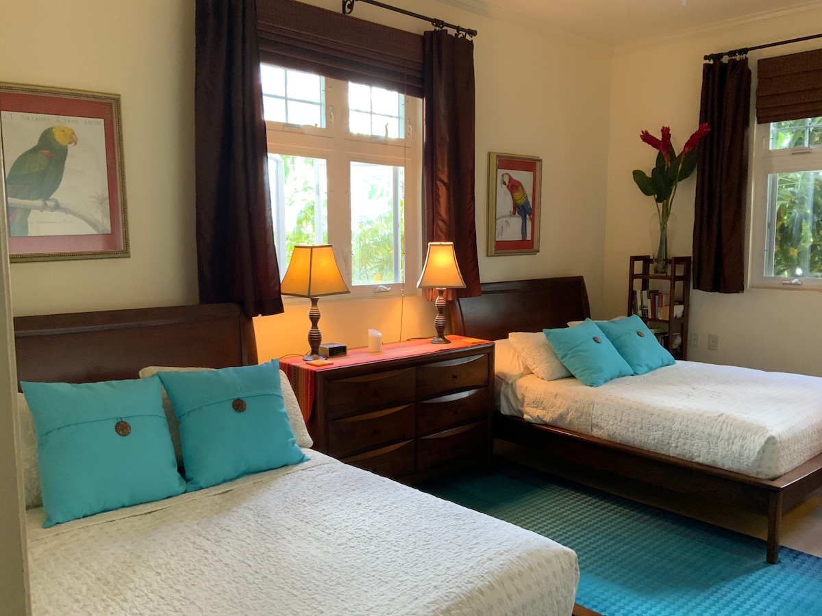 Fedezd fel a Casa-Avit, egy idilli tengerparti oázist, amely tengerfákon fészkel, és félreeső helyen fekszik Bodden Town szélén. Merülj el az elegáns, king méretű hálószobákban, az óceánra nyíló lélegzetelállító kilátásban és a híres művész, Avril Ward által válogatott, műalkotásokkal teli lakóterekben. Kóstold meg az óceánra nyíló panorámát a visszahúzható tolóajtókról, és élvezd a közvetlen tengerparti hozzáférést a kajakozáshoz és a sznorkelezéshez. A földszinten egyszerűen lazíts a függőágyak ölelésében, miközben grillezöl, és frissülj fel a privát sós vizű medencében.