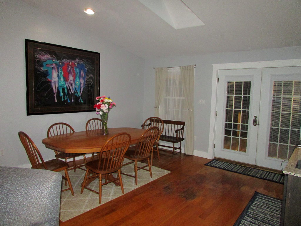 A felújított és felújított 1880-as parasztházam szárnyának saját elülső és hátsó bejárata van, amely a fő folyosóra/szalonba vezet. Nappali tévével, rejtvényekkel, játékokkal, kártyákkal, magazinokkal stb. A szomszédos konyha és étkező számos kényelmi szolgáltatást kínál, például hűtőszekrényt, tűzhelyet, mikrohullámú sütőt és kávéfőzőt. A lépcső alatt van egy félfürdőszoba. A nagy lépcsőházban két nagy queen szoba található teljes fürdőszobával, valamint egy további queen hálószoba fürdőszobával. Ízléses, kényelmes, figyelmes.