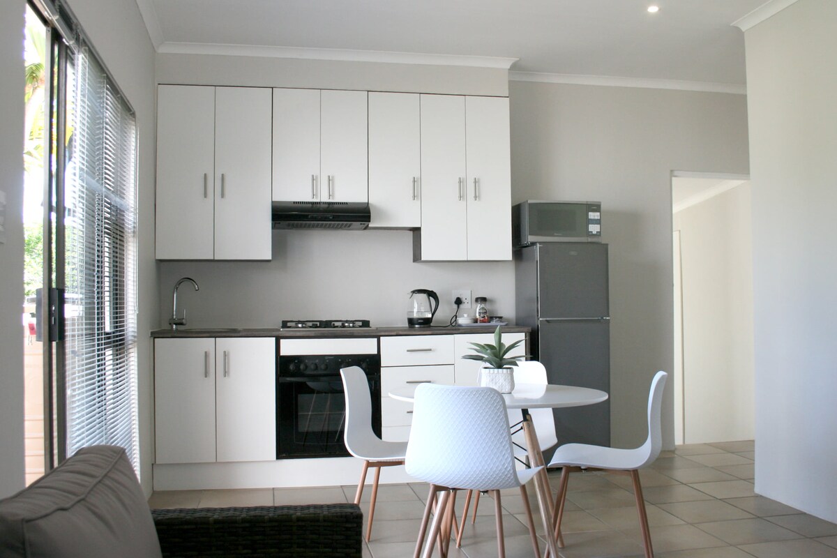 Önellátó stúdiónk tartalék energiával és légkondival kapcsolódik a főépülethez. Tiszta és hangulatos, nyitott elrendezésű stúdió stílusú egység saját bejárattal és saját terasszal. Távoli hozzáférés és utcai parkolás 1 jármű számára. A dupla fülkés, vonóhoroggal ellátott bakkik nem férnek be, ha 2 autó parkol benne – ahol az utcai parkolás általában biztonságos a csendes környékünkön. A Nahoon Beach és a folyó 1,5 km-re, a Spar és az éttermek 500 méterre vannak.