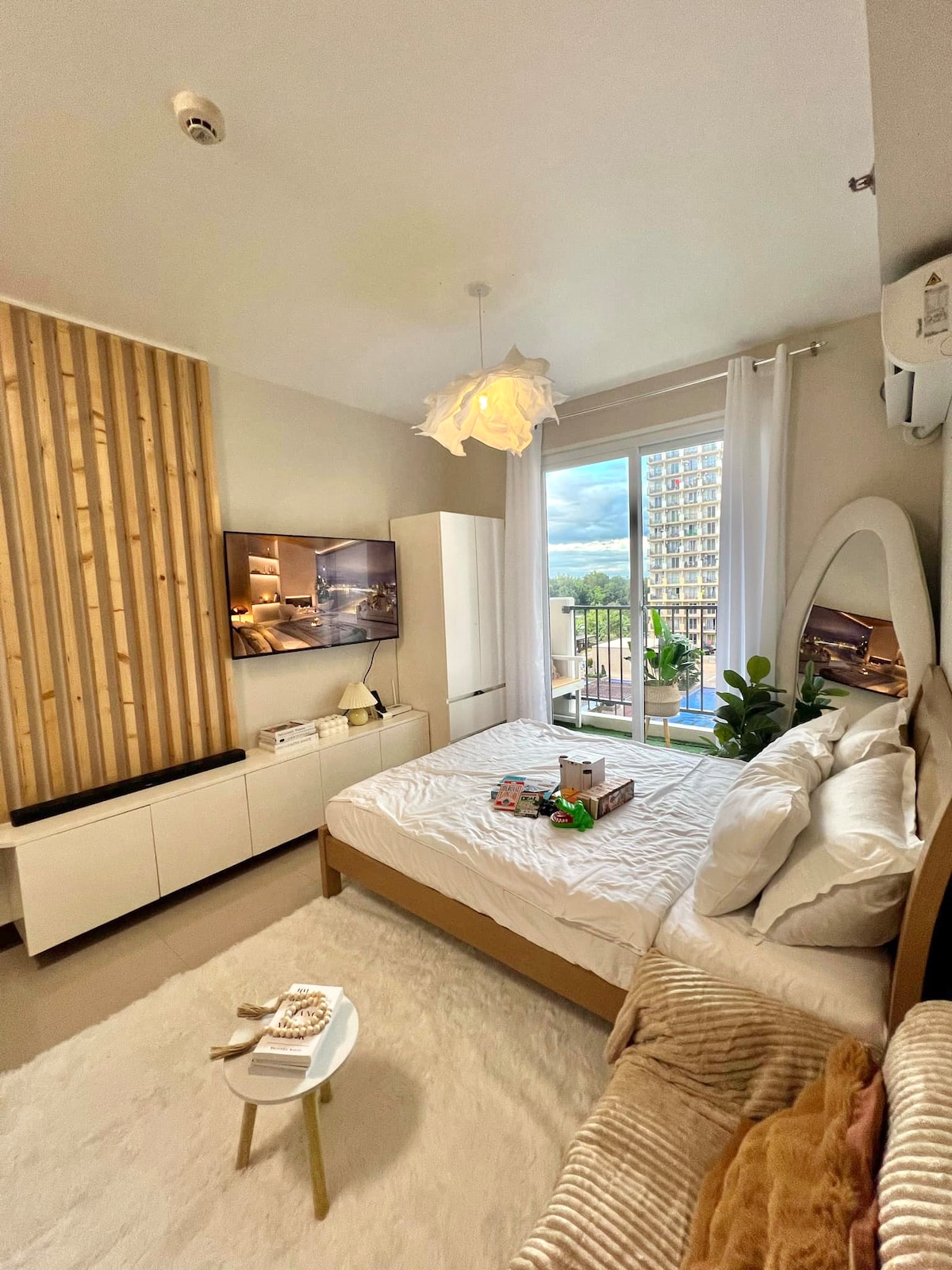 Lazíts a Nookō Studioban – egy zen ihlette saroklakás erkélyrel, megemelt queen méretű ággyal, egyszemélyes kanapéággyal és 4K mozi projektorral. Csak néhány percre a Cebu IT Parktól és a JY Square-től, ahol kirándulások várnak a hegyekbe, például a Tops és a Temple of Leah területére. A Cebu Business Park és a belváros felé vezető PUJ útvonalak is néhány perc sétára vannak. Élvezd a medencéket, az edzőtermet és a kerteket békés környezetben. Tökéletes egyedül utazóknak, pároknak vagy három fős csoportoknak.