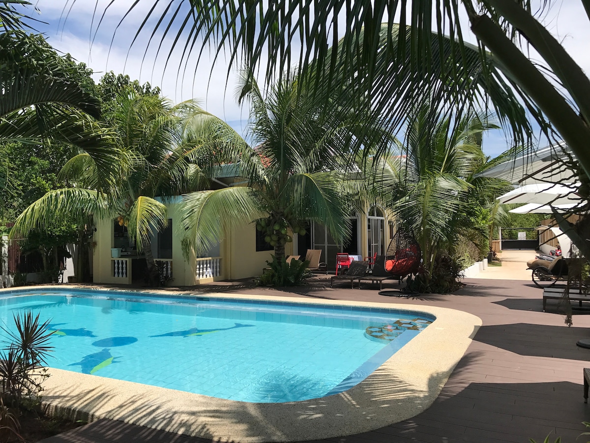 Lenyűgöző tengerparti ingatlan a Lambug Beach hosszú fehér homokos szakaszán. Powdery white beach from your doorstep. Élvezd a hullámok nyugtató hangjait és a lélegzetelállító naplementéket. A Kawasan Fall 10 percre található a Canyoneering kalandodhoz. WiFi: Maradj kapcsolatban nagy sebességű, internet-hozzáféréssel. Függetlenül attól, hogy távolról dolgozol, vagy online osztod meg a nyaralási pillanatokat. Reggeli az árban, hogy a reggelek még különlegesebbek legyenek.