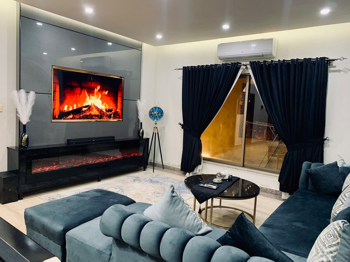 A spacious one Bed apartment King size bed Massage chair Pool table Sheesha for Sheesha lover Massive fire place 65” LED Sound system Netflix and chill Complementary snacks and drinks Bathroom amenities Fully equipped kitchen Heating and cooling system Free of cost cleaning services during the longer stays Scenic view from the terrace Assistance with the luggage available Self checkin available Staff available in the building till 9pm for assistance and to make your stay comfortable