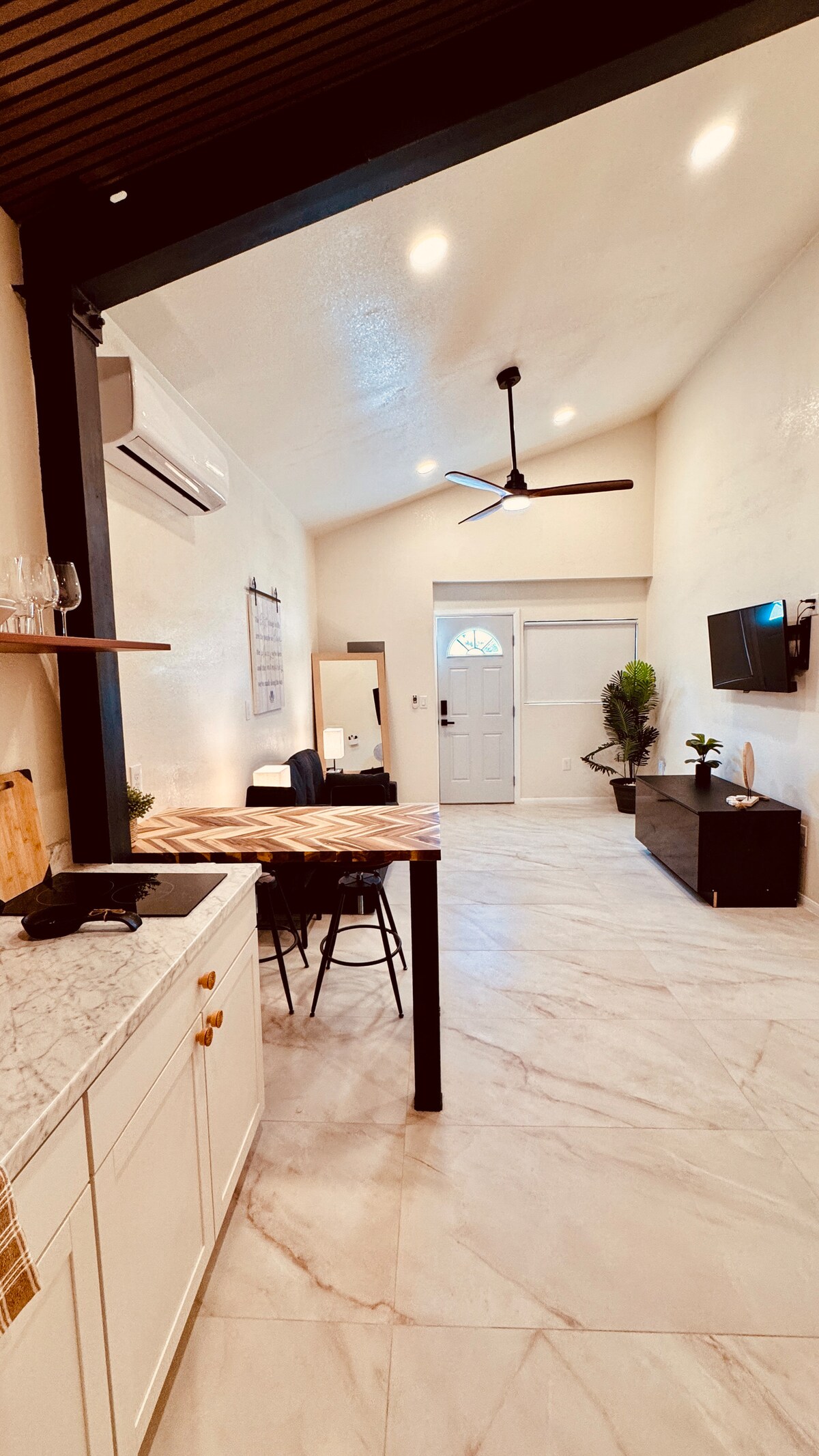 Tökéletes hely egy vegasi kiruccanáshoz! Ha megismered a várost, ez a tökéletes hely mindent megad neked, amire szükséged van ahhoz, hogy egy hosszú nap után visszatérj és pihenj. A gyors Wi-Fi-vel rendelkező íróasztal tökéletes az utolsó pillanatban érkező, megszakítás nélküli zoom-hívások fogadására. - Hűtés és fűtés mini split légkondicionálóval – Okostévé és kanapé - Étkezőasztal - Kávéfőző, mikrohullámú sütő és légsütő - Minihűtő - Külső veranda és ülőhelyek - Tágas gardrób - Teljes tükör – Sampon és hajkondicionáló is van