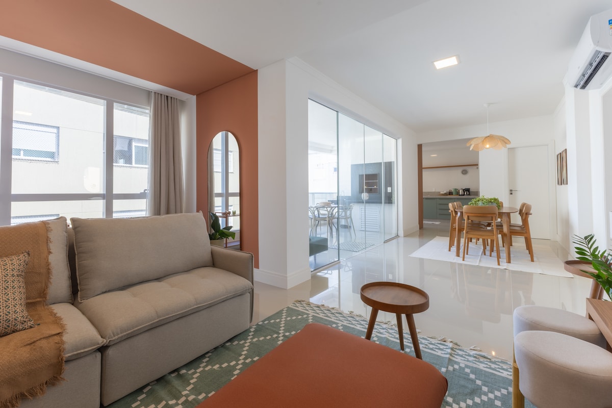 Apto redecorado,150mts mar, coração de Meia-Praia.