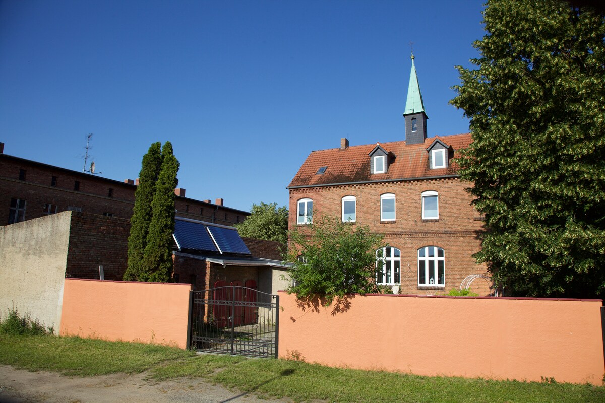 A Magdeburg közelében található, hangulatos falu szélén található történelmi épületünk jól felszerelt konyhát és meditációs szobát kínál. 2 hálószoba különböző emeleteken, 2 kétszemélyes ággyal. További alvóhelyek állnak rendelkezésre két gyermek számára. A tágas fürdőszobában található szauna zuhanyzóval és káddal wellness lehetőséget kínál a mentális, mentális és fizikai jólléthez.
