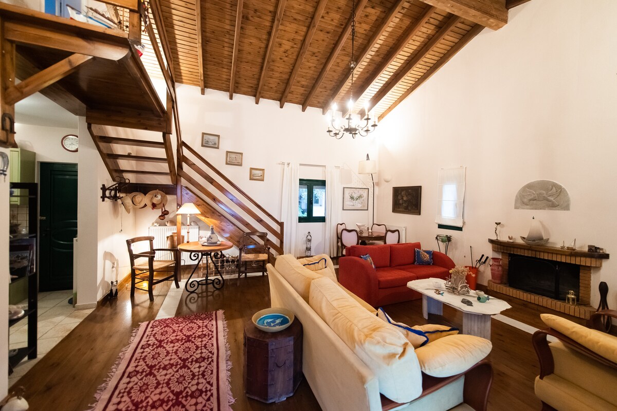 This two level cottage is inside a beachfront olive grove , has a quiet and secluded beach and a beautiful swimming pool. Ideal for 2 families or a company of 9 people, who want to spend their holidays together having at the same time their independence. Relax and enjoy your summer or winter holidays, in a pristine, peaceful, Greek countryside, surrounded by the crystal clear waters of North Euboean Gulf and the beautiful Mediterranean nature.