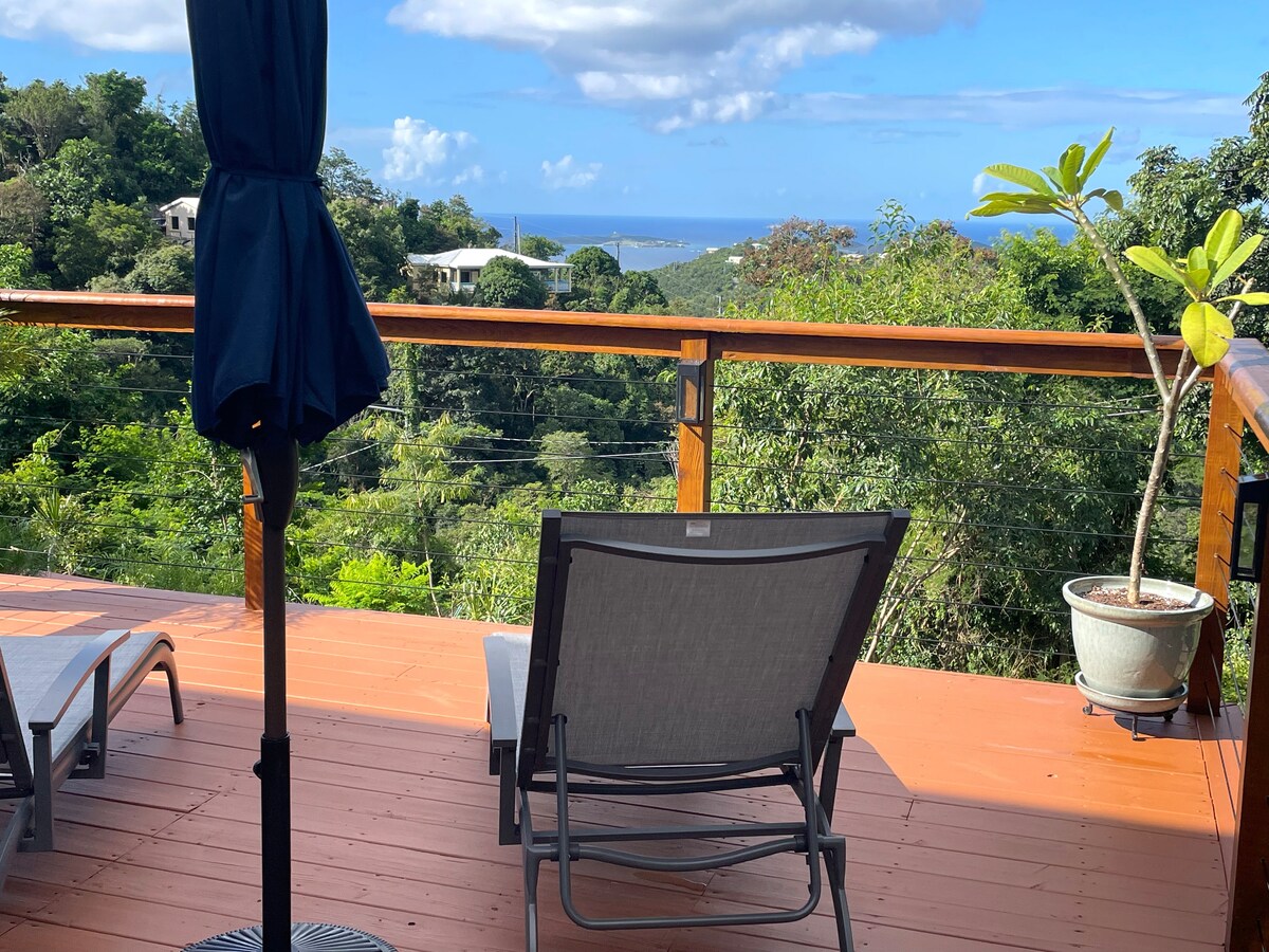 A Blue View egy vadonatúj építmény! Klasszikus, puha, modern karibi építészet egy teljes hektáron, ahonnan lenyűgöző kilátás nyílik a Ram Head-félsziget feletti napkeltétől a St. Thomas feletti napnyugtáig. Nagyon különleges ingatlan, amely a legnagyobb gondossággal rögzíti a Leeward szellőt, és akadálytalan kilátást nyújt a St. Croix 40mi városrészre. Találd meg a tökéletes mennyiségű napot vagy árnyékot napközben bármikor. A Blue View egy külön villa a fő villánk mellett, és 6 percre a Cruz Bay-től