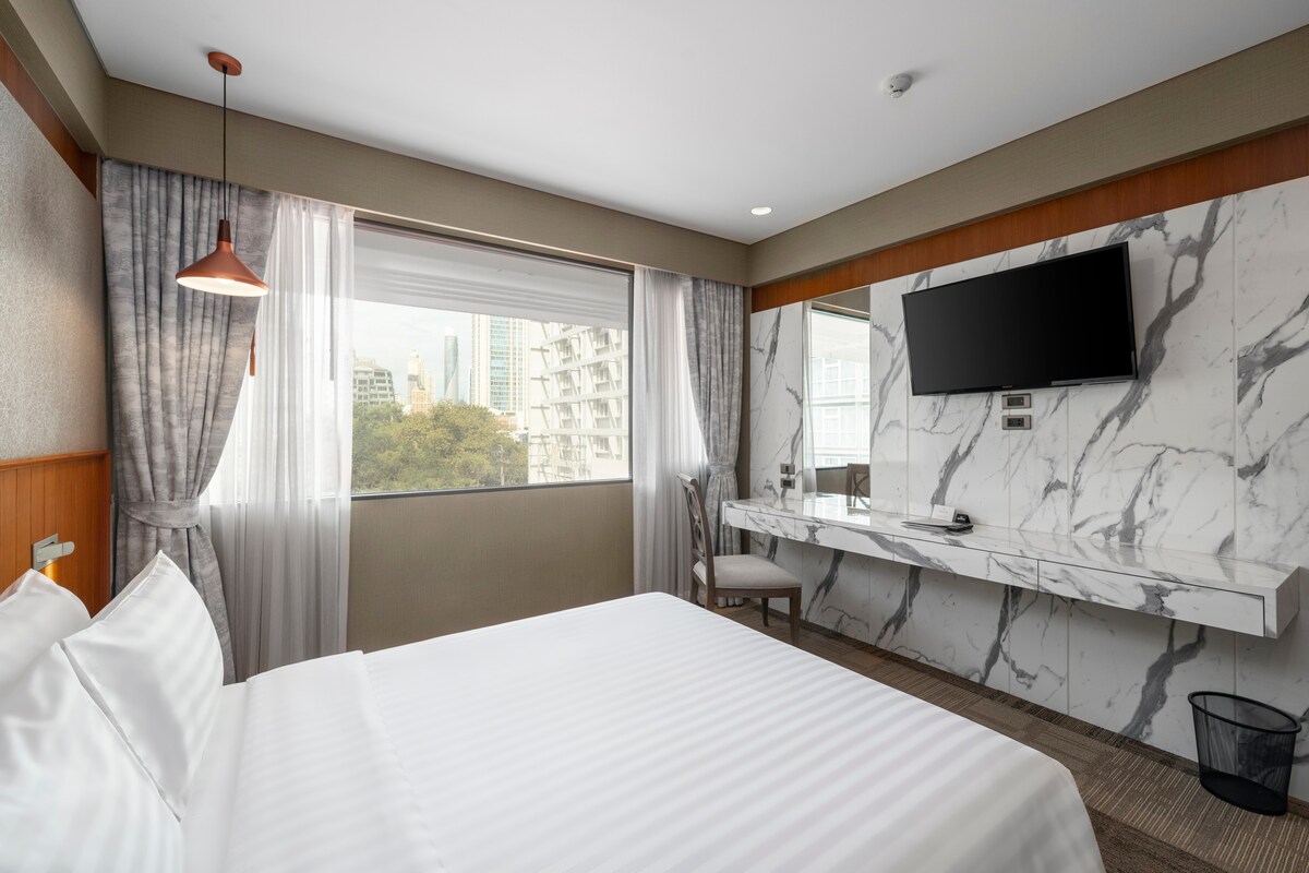 Enjoy a comfortable stay in this Superior Room at a hotel in the heart of Phrom Phong, just a 7-minute walk to BTS Phrom Phong. Located on Sukhumvit Soi 33, the hotel is close to the EM District (Emporium, EmQuartier, Emsphere) and Benchasiri Park. Guests can enjoy access to the swimming pool and gym, with plenty of restaurants, cafés, and shops within easy walking distance. An ideal choice for both business and leisure stays in central Bangkok.
