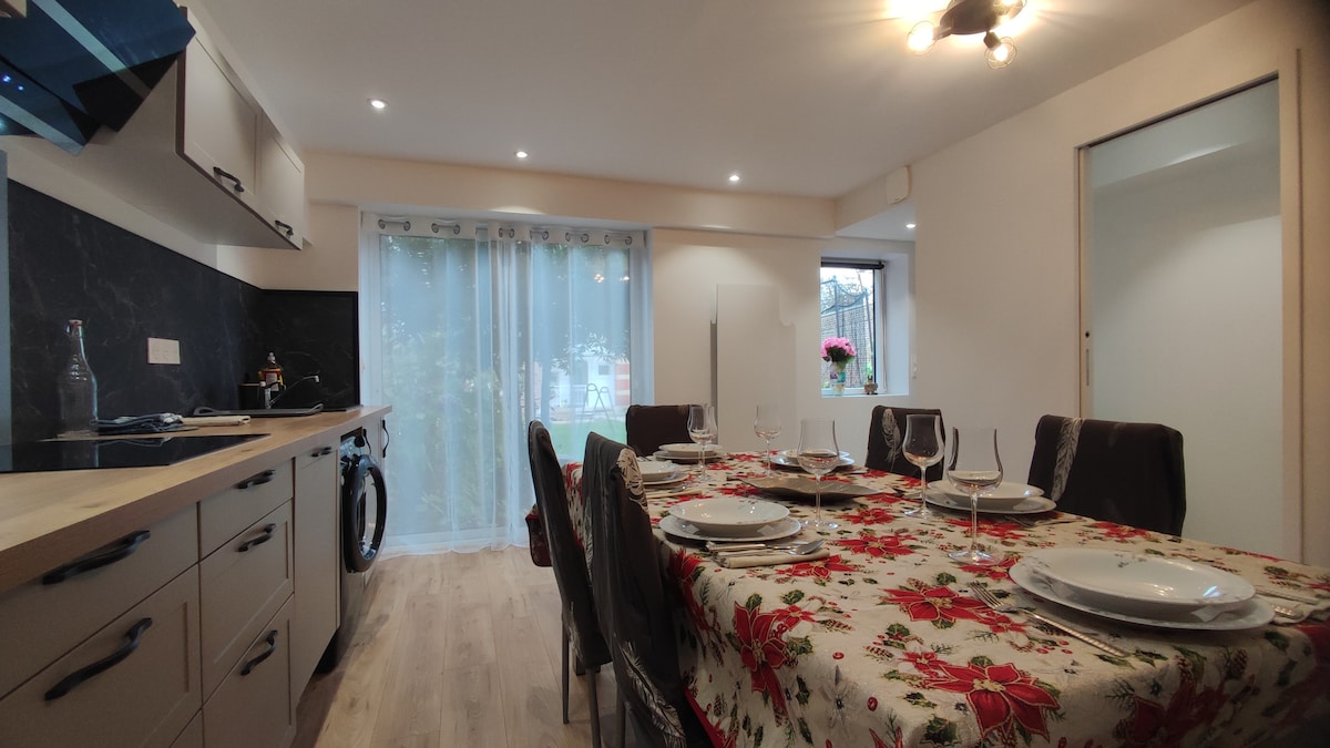 🛏️ 2 hálószoba: 1. hálószoba: franciaágy, egyszemélyes emeletes ágy, 1 esernyőágy. 2. hálószoba: franciaágy, 2 személyes kanapéágy a padlón , 1 egyszemélyes matrac a padlón, 1 esernyőágy. 🍽️ Teljesen felszerelt konyha 🛁 Fürdőszoba 🛋️ Nappali 👶 Etetőszék Egy éjszakára ☕ elérhető: kávé, tea, cukrok, fűszerek, lepedők, vécépapír és törölközők. 🚗 Parkolás: ingyenes utcai parkolás lehetséges. Belváros / Állatkert 10 perc sétára Coliseum 5 perc séta Zenith 5 perc autóval