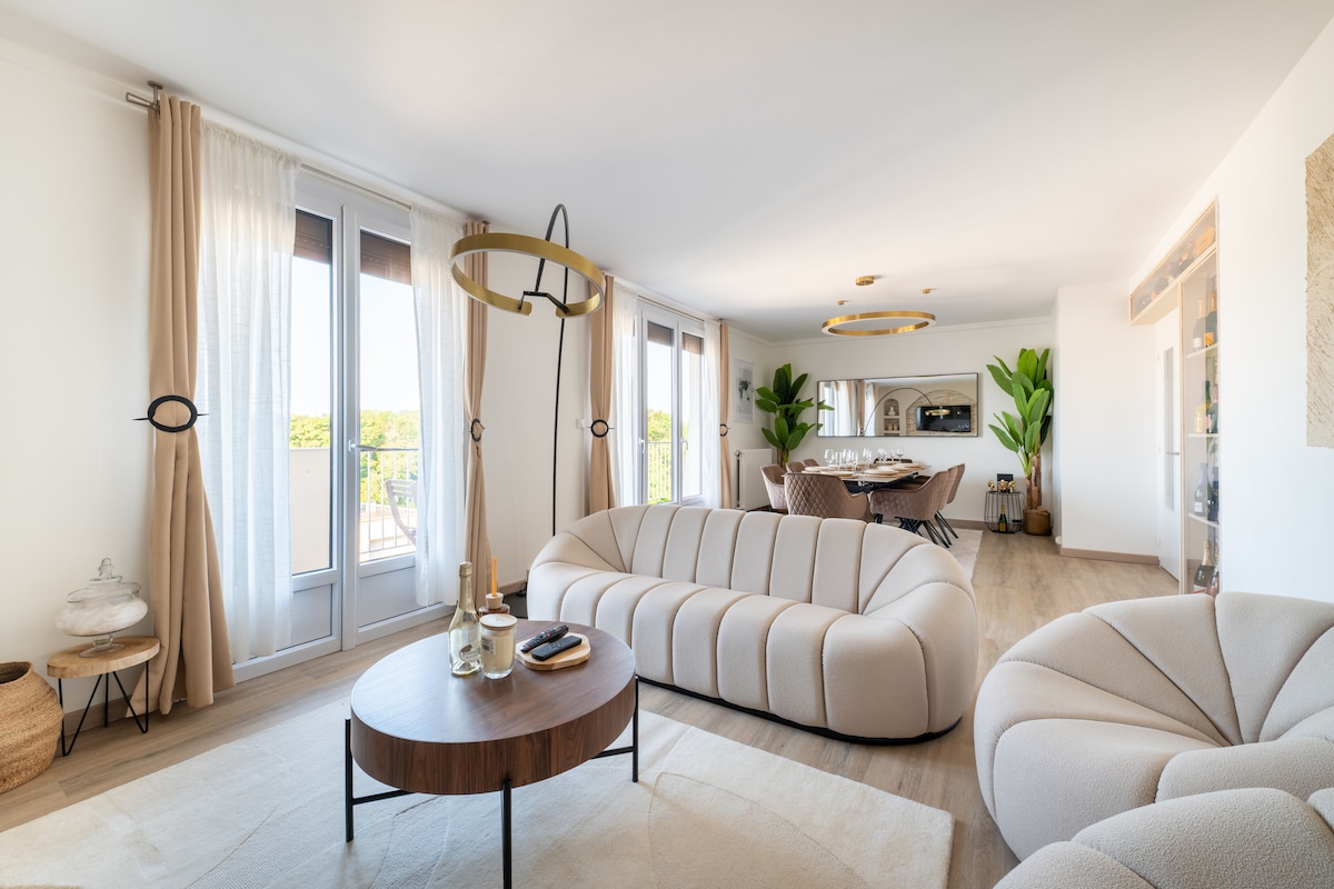 Experience luxury in Reims. Set in a 19th-century private mansion, this air-conditioned designer Duplex blends historic charm with modern comfort. The highlight? Your own private SPA (Sauna & Hammam) to relax after sightseeing. Perfectly located in the Golden Triangle (steps from Place du Forum & Cathedral), it features 2 independent bedrooms and high-end amenities. Sleeps up to 6 guests.
