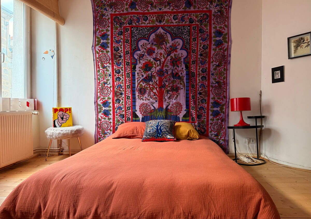 Stylish, bright, brand new 2-bedroom, 2-bath apartment in Saint-Étienne. Calm and safe, with free parking in the street available right at the base of the building. Located on the 3rd floor, offering lovely views and plenty of natural light. Just a minute walk to the Cité du Design and 10mins to the city center. 1–2mins to Carnot train station with direct trains to Lyon. Fully renovated, airy, warm, and welcoming—perfect for business trips, couples, or design lovers.