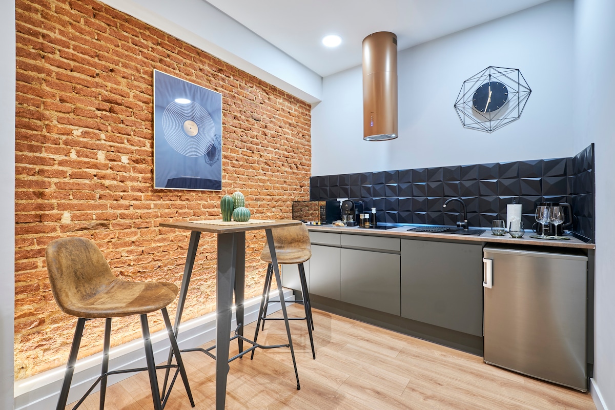 A „Vine” lakás Madrid központjában, a Gran Via mellett található, egy csendes utcában, egy új épületben, lifttel. Természet ihlette, világos és modern, Wi-Fi-kapcsolattal rendelkezik, teljesen felszerelt, és nagyon közel található éttermekhez, tapasokhoz, metróvonalakhoz, üzletekhez és galériákhoz. A legjobb egyedülállóknak, pároknak vagy gyerekes pároknak! A háziállatokat boldogan hívjuk meg!!! Az apartman egy új bulidingban található, lifttel! Modern kialakítású, sok zöld növényzettel, a nevére, Vine. Az egész lakás hosszában egy hatalmas ablak egy gyönyörű privát kertre néz. A lakás egy kétszemélyes ággyal rendelkező hálószobából, egy kihúzható kanapéval, konyhával és fürdőszobával rendelkező nappaliból áll. Van Wi-Fi, és teljesen felszerelt, van benne mosógép, tévé, légkondicionáló és Nespresso kávéfőző - minden készen áll a kényelemre és az élvezetre! A lakás egy stúdió nyílt terű lakás - és a tiéd, hogy élvezd! A lakásban nincsenek olyan területek, amelyeket nem használhatsz vagy használhatsz! Szeretünk vendégeket fogadni, de tiszteletben tartjuk a vendégeink magánéletét is! Annyit vagyunk itt neked, amennyit csak szeretnél! A nyüzsgő Malasana városrészen, a Gran Via közelében található számos autentikus kávézónak, tapasnak és bárnak ad otthont. A hatalmas Zara Primark & Mango percekre található. A legjobb madridi helyszínek, például a Royal Palace, a Puerta del Sol & Museums sétatávolságra találhatók A Gran Via központi metróállomás 2 perces sétára található az apartmantól. Innen metróval bárhová eljuthatsz Madridban, valamint az összes vasútállomásra, amely Madridból Spanyolország többi részébe visz. Ha autóval érkezel, egy nagy parkoló található a madridi Barco 1-nél, mindössze egy percre a lakástól. A közelben van egy kerékpárkölcsönző is. Egy vendégfogadási készlet vízből, üdítőből, tejből, kávéból, teából és édesítőből álló készlet vár rád :-)
