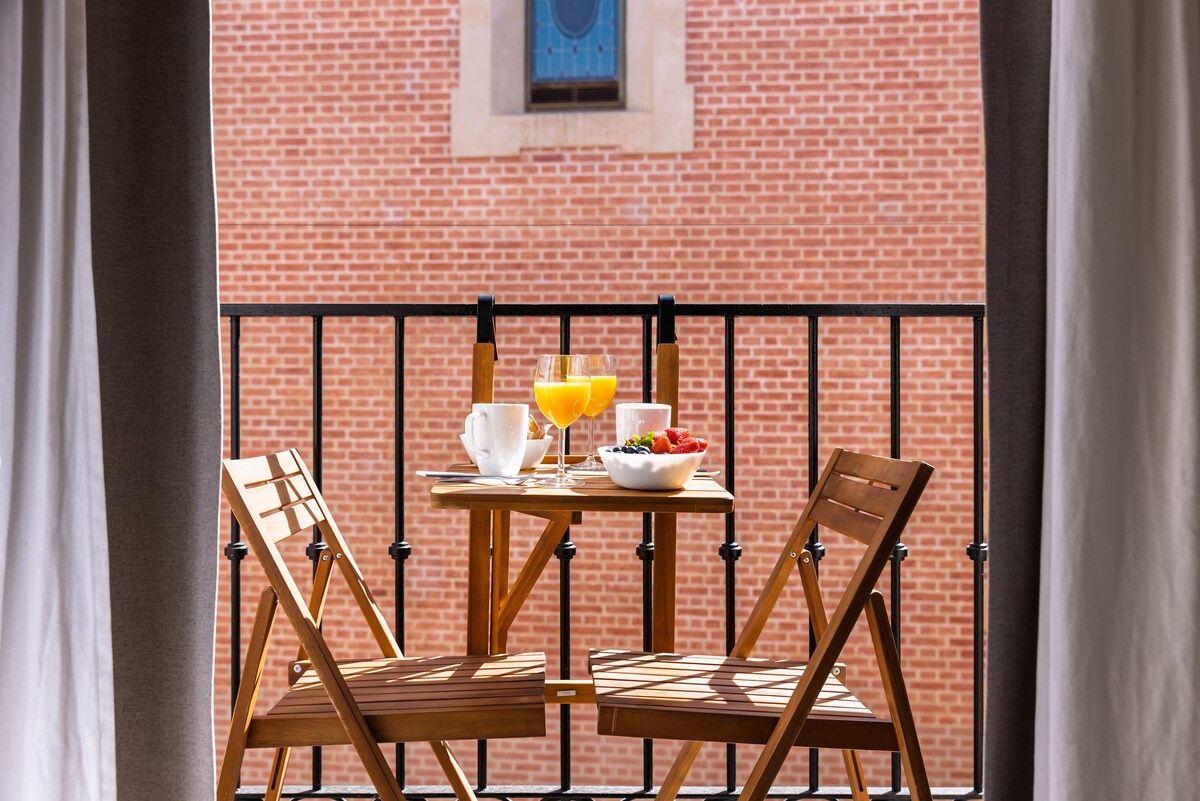 Los Ventanales, our classic 19th century two-bedroom home located in the very vibrant Old Town Malaga, between Calle Nueva and Calle Larios. Partly renovated, retains its original Juliet balconies with large windows and high ceilings, creating a bright and sunny space, offering a great view of the San Juan Church. The apartment is in the middle of everything: shops, restaurants, sightseeing and a 15-minute walk to the beach.