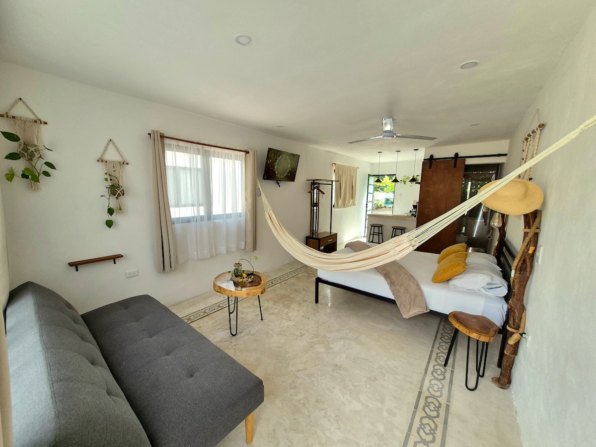 A Casa Xunan kab-ban otthonos helyed lesz, amit megoszthatsz a családdal. Kényelmes, funkcionális és egyszerű bútorokkal nagyon kellemessé teszi az itt-tartózkodást. Olyan helyiségeket találsz, amelyek tele vannak fényekkel és árnyékokkal, rácsos teraszokkal, amelyek reggelente a legjobb hangulatot teremtik a kávéhoz. A hatalmas gallyak és tamarind fák pedig árnyékot adnak a medencénél való kellemes pihenéshez.