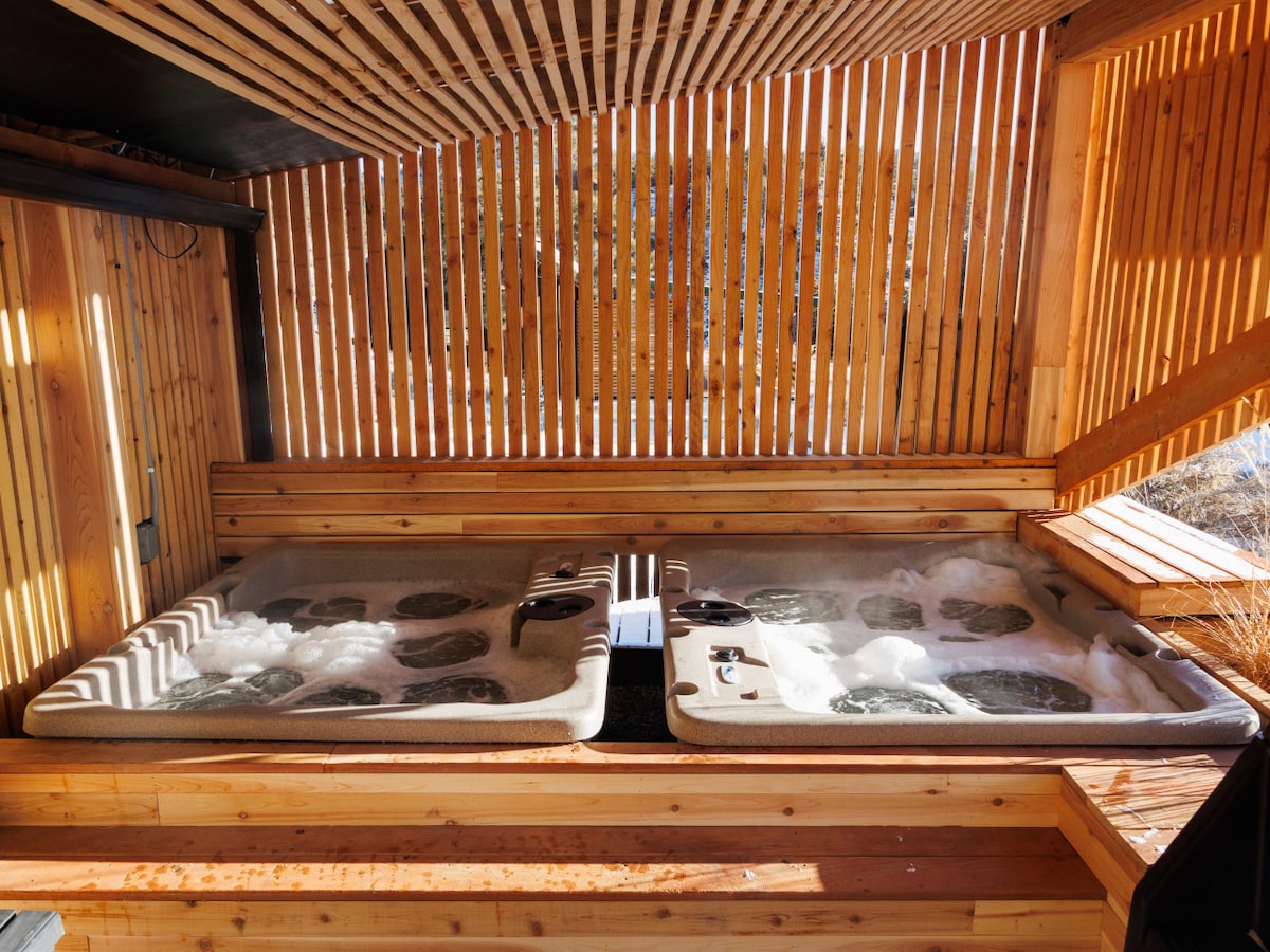 A felújított 1800-as évekbeli bányászkunyhók a hegyekben helyezkednek el, a Cottonwood Creekkel határos. Egyedi kabinunkban kézműves, szagtalan melegvízű pezsgőfürdő található, amely folyamatosan áramló végtelen széllel és hangulatbeállítással LED-es világítással rendelkezik. A privát melegforrások közvetlenül a teraszod mellett találhatók. Nem rendelkezünk Wi-Fi-vel, ezért arra számítunk, hogy kihúzod a konnektorból. Vezetékes telefonunk van, ha bárkivel kommunikálnod kell.