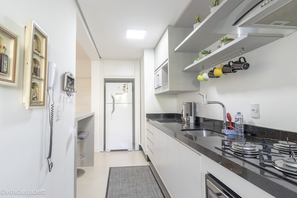 Pihenj, stresszold és élvezd a napsütést Brazília egyik legszebb helyén! Az erkélyről élvezheted a szellőt és a kilátást egy késő délutánra, vagy felébredhetsz, és ellenőrizheted, hogy a nap a strandra vagy a fűtött medencére vonatkozik-e. Tökéletes elhelyezkedésű lakás szingliknek vagy pároknak, akik szeretik élvezni a Jurere Internacional bárjainak és éttermeinek mozgását anélkül, hogy sokat kellene sétálniuk. Ideális arra is, hogy kisgyermekeket vigyél magaddal, és élvezd az üdülőhely nyugalmát és előnyeit.