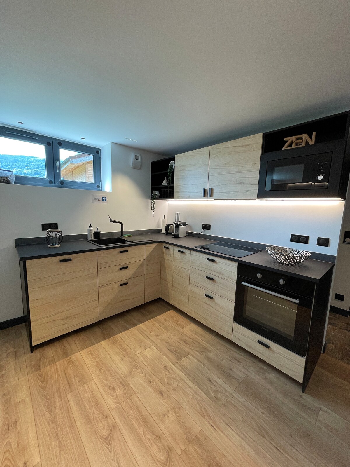 Incredible cocoon in the heart of Chamonix! L'Abri Vallot will seduce you with its location and decoration in a contemporary mountain style! Enjoy a private terrace with a sofa and a view of the glaciers and Mont-Blanc summit! A separate bedroom with a very comfortable double bed (separable into two single beds), a kitchen equipped with all the appliances! The walk-in shower to start a great day!