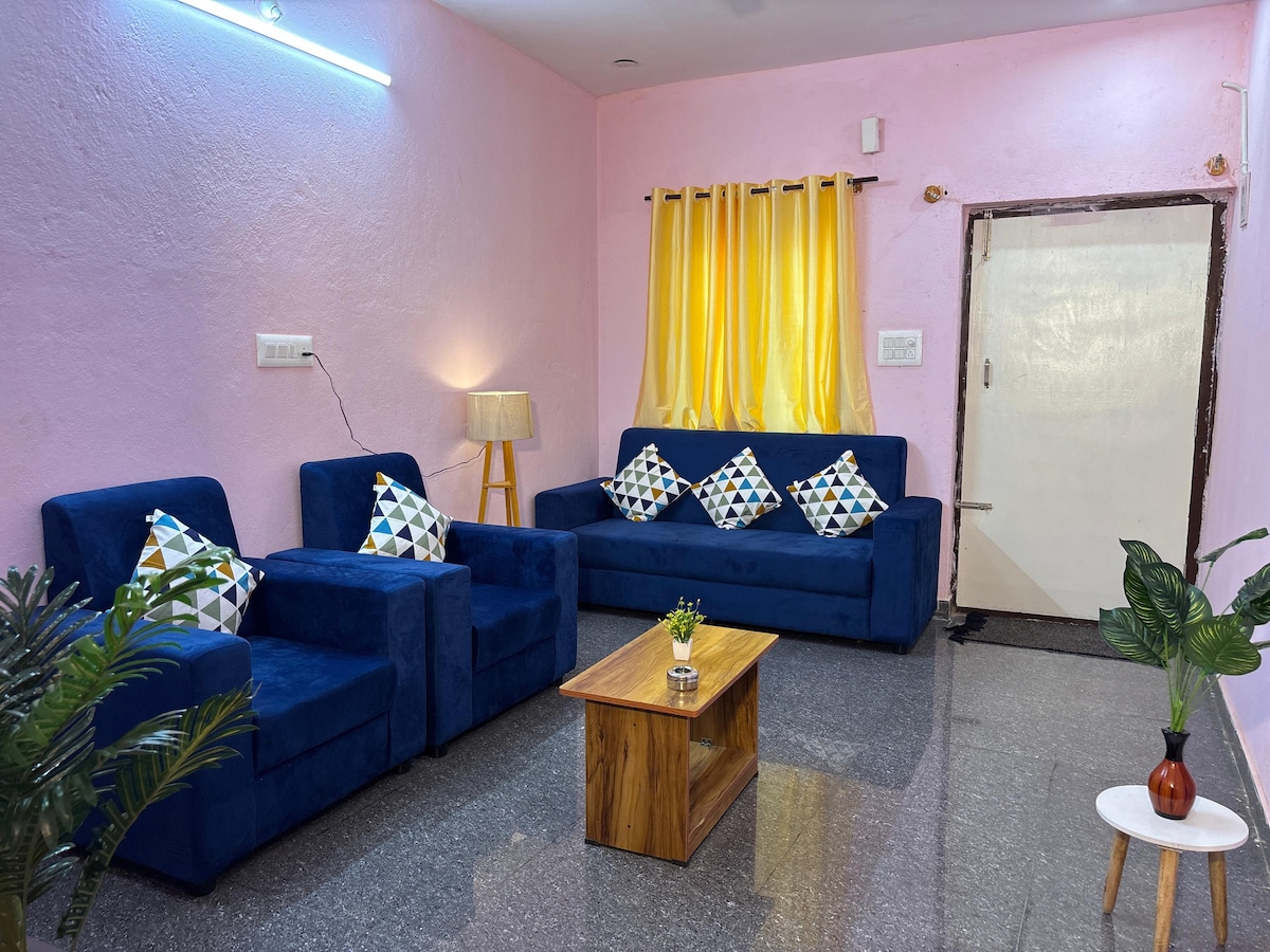 Saanvi’s is a unique holiday home nestled in a serene layout of Mysore. Set on a 4000 sq ft plot, it features a spacious portico, a lush garden, and just one cozy room with a separate kitchen—ideal for privacy. The kitchen is fully equipped with a gas stove, cookware, glassware, and more. Located on the way to temple town of Nanjangud, and within 8–9 km of major attractions like Chamundi Hills, Mysore Zoo, and the Palace. Best suited for families 👪—and yes, your furry friends are welcome too!