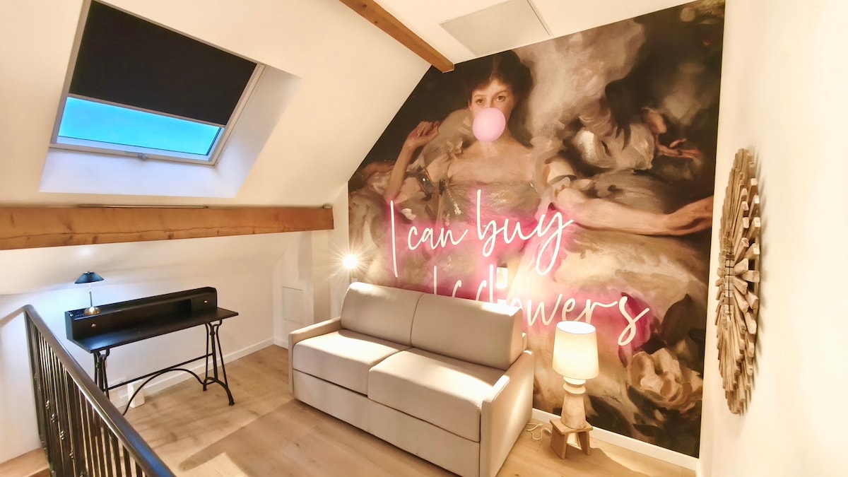 Fedezd fel a La Grange cal’ain-t, egy különleges helyet Belley-ben, Bugey szívében, ahol pihentető és wellness-központú szálláshelyen szállhatsz meg. Merülj el a fürdőkádban, vagy hagyd, hogy meglepjen az érzékszervi zuhany. A gyönyörű természeti környezetben elhelyezkedő loftlakásunk tökéletes kiindulópont a Bourget-tó, Aix-les-Bains és a Bugey természeti tájainak felfedezéséhez, valamint a szabadtéri tevékenységek, a túrázás és a kerékpározás élvezetéhez. Otthonos és meghitt légkör, tökéletes egy romantikus vagy regeneráló hétvégéhez.