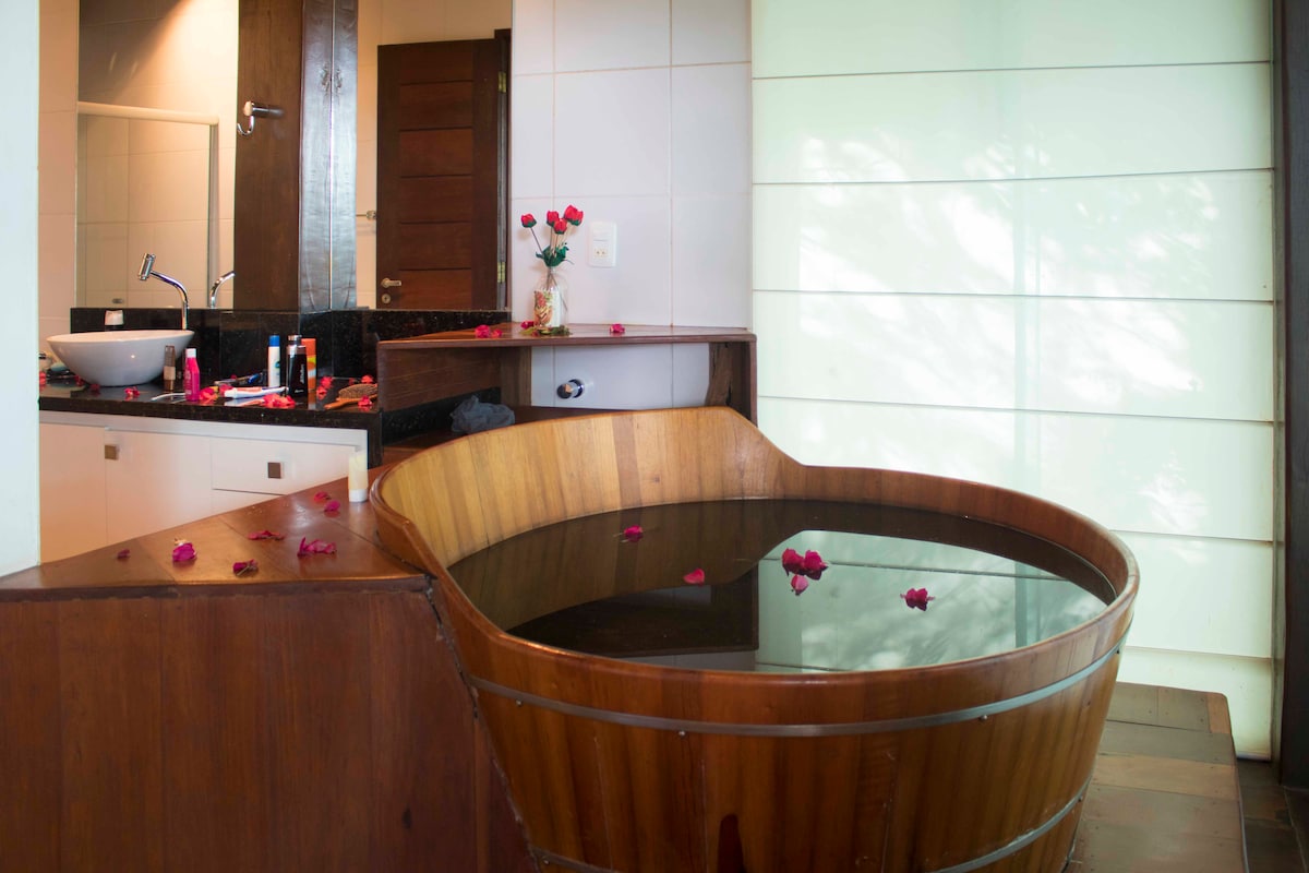 Gyere és szállj meg egy műalkotásban, amely kényelmet és luxust kínál a természet közepén. A lakosztály egy nagyon csendes és biztonságos helyen található, 1 km-re a központi tértől. Művészi és egészséges környezetet kínál kültéri, tiszta vízzel és organikus gyümölcsökkel a hátsó udvarról. A helyszín és az agroerdős, és hozzáférést biztosít egy gyönyörű természetes gyógyfürdőhöz, folyókhoz és vízesésekhez. ingyenes Wi-Fi, dupla pezsgőfürdő, napenergiával működő vízmelegítő és minden hulladék ökológiai kezelése. A helyszínen jógaórákat és permakultúrát kínálunk.